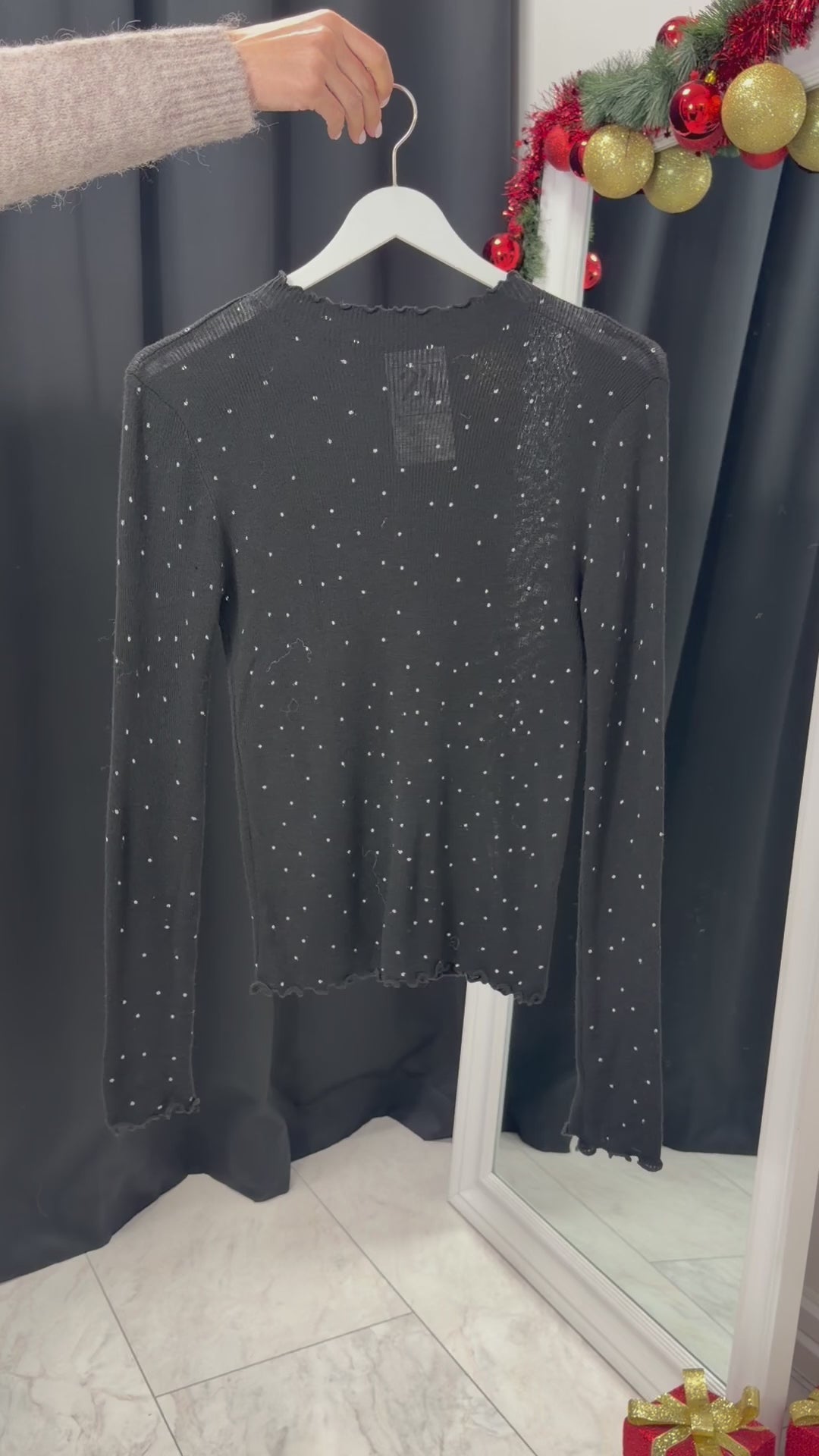 Нежна, еластична и женствена – Elegant Dots Knit е блузата, която комбинира комфорт и фин блясък. Декорирана с деликатни ефектни точки, тя добавя елегантен акцент към всеки ежедневен или по-стилен аутфит. Меката плетка приляга перфектно по тялото, а завършените вълнообразни краища придават модерен и изискан вид.