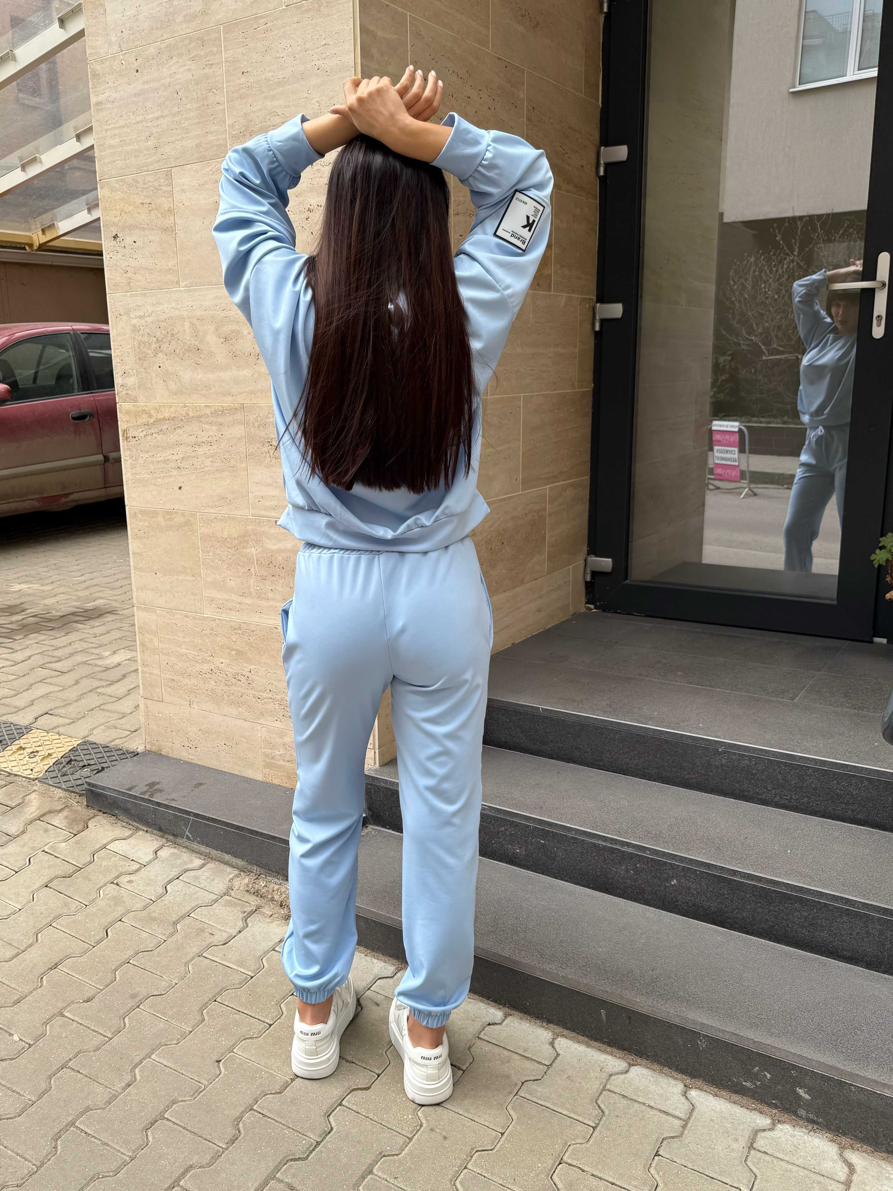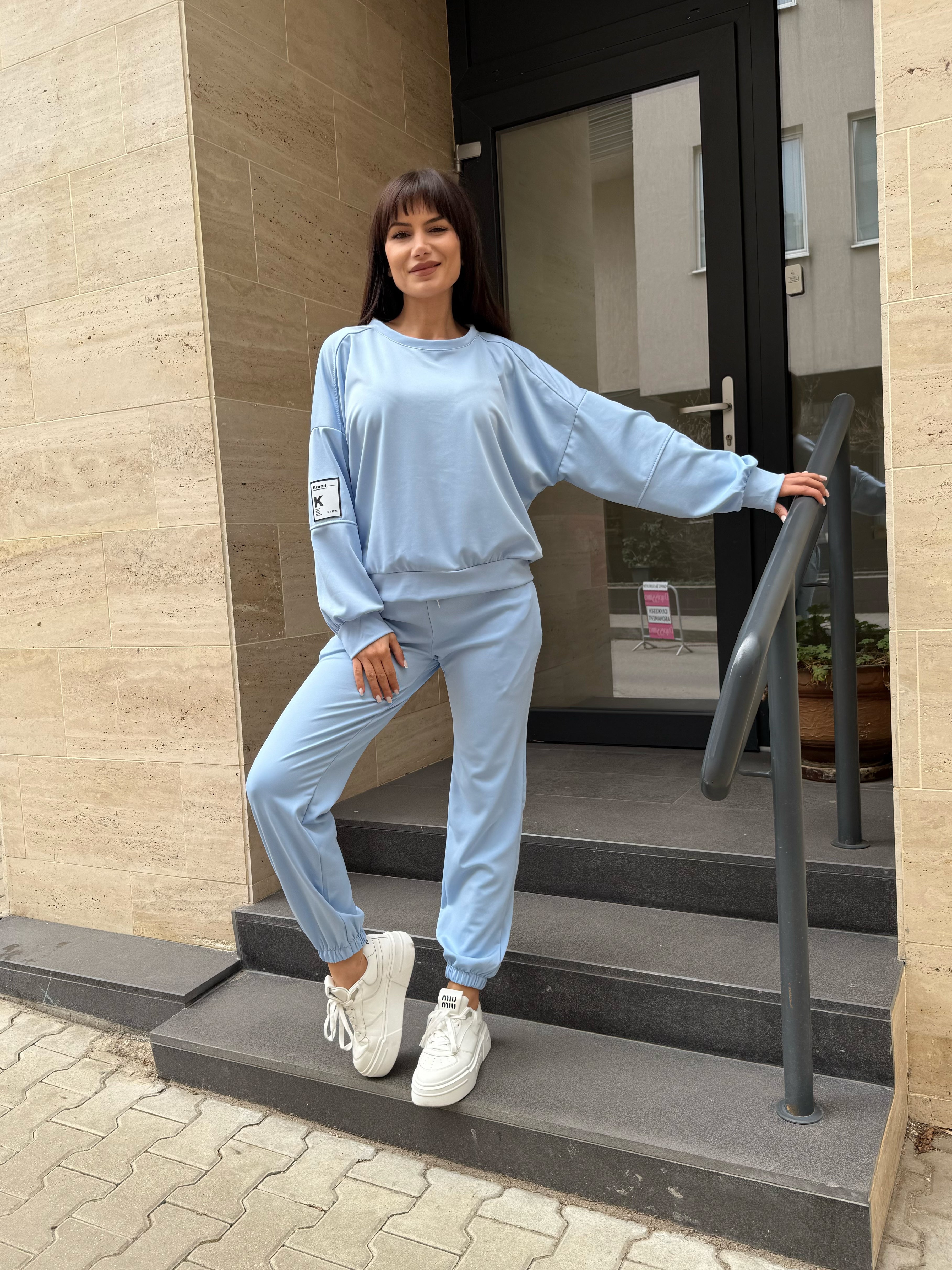 СПОРТЕН КОМПЛЕКТ от две части - Свободен модел блуза с обло деколте и панталон с висока талия.