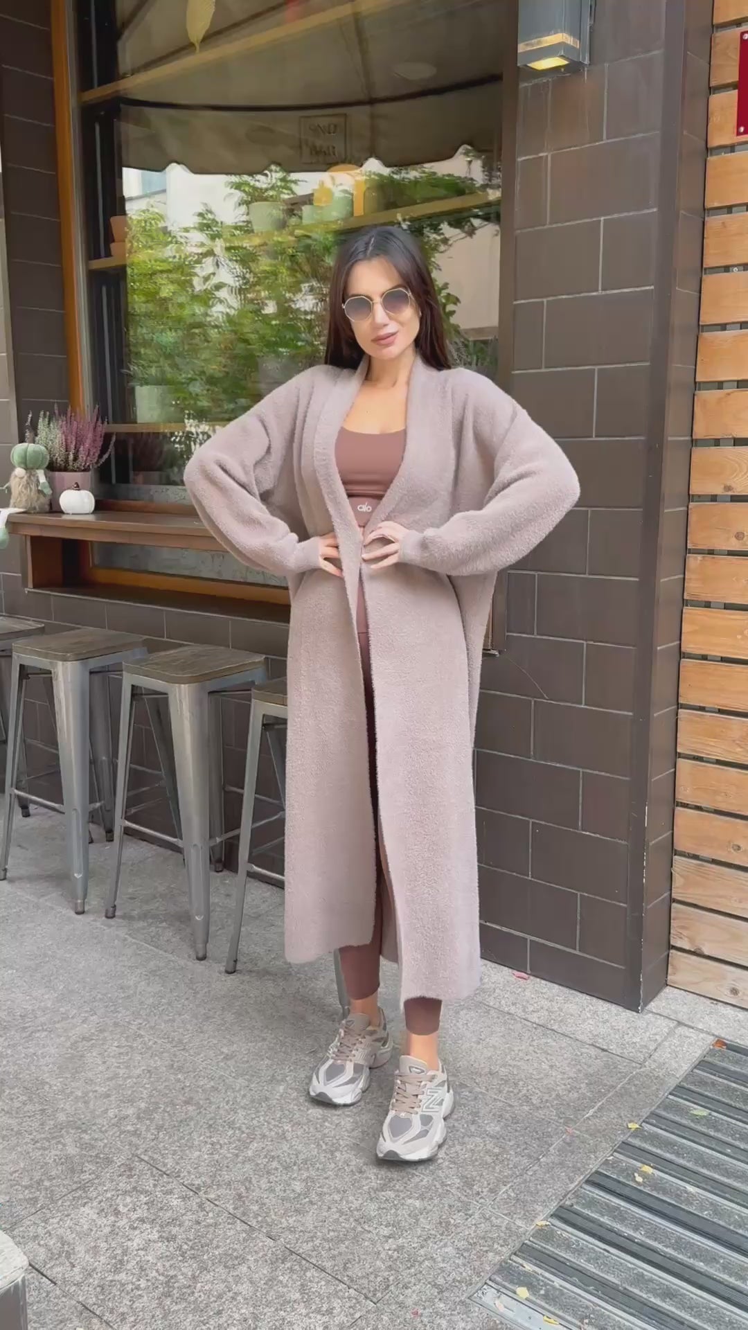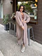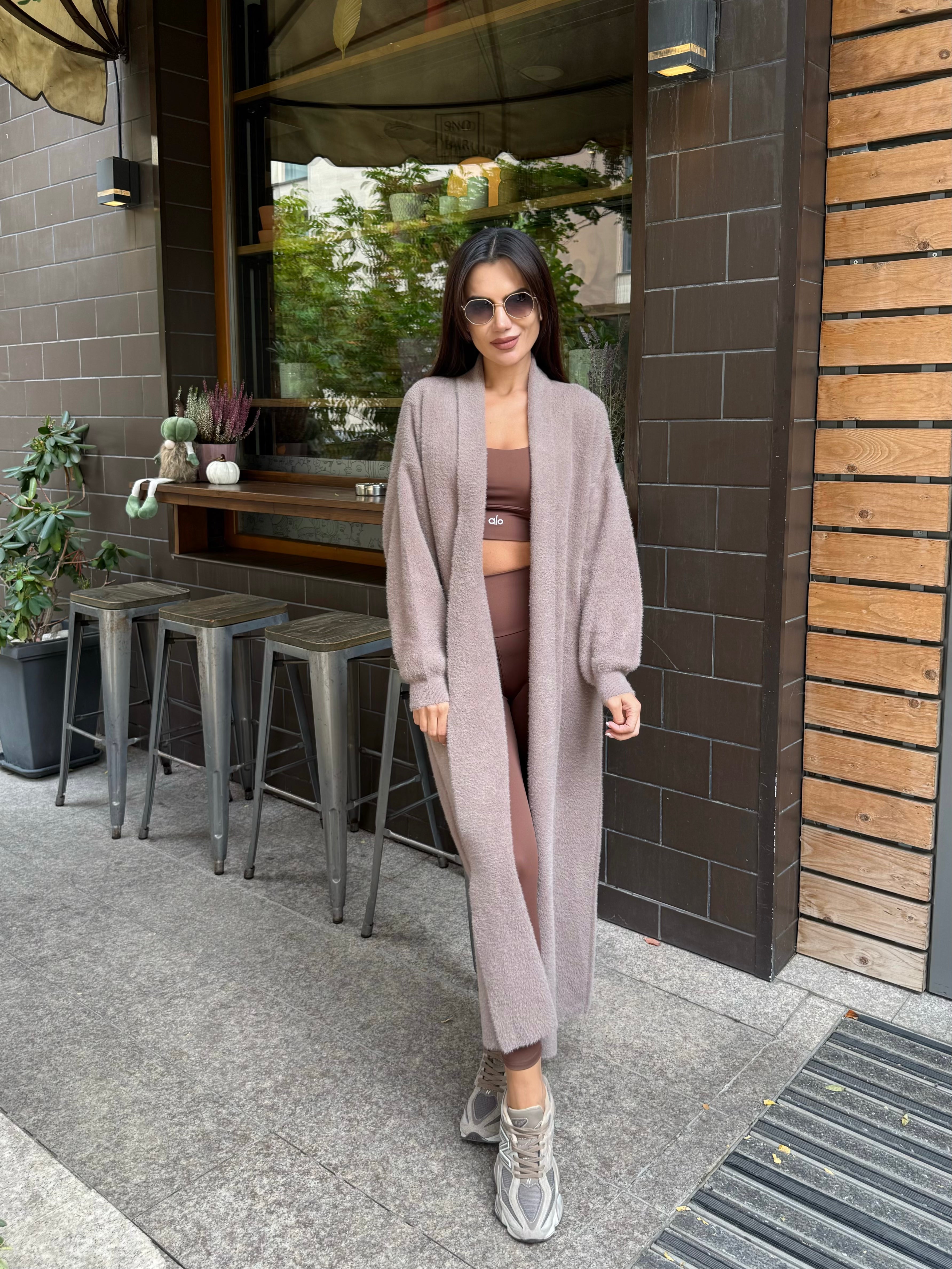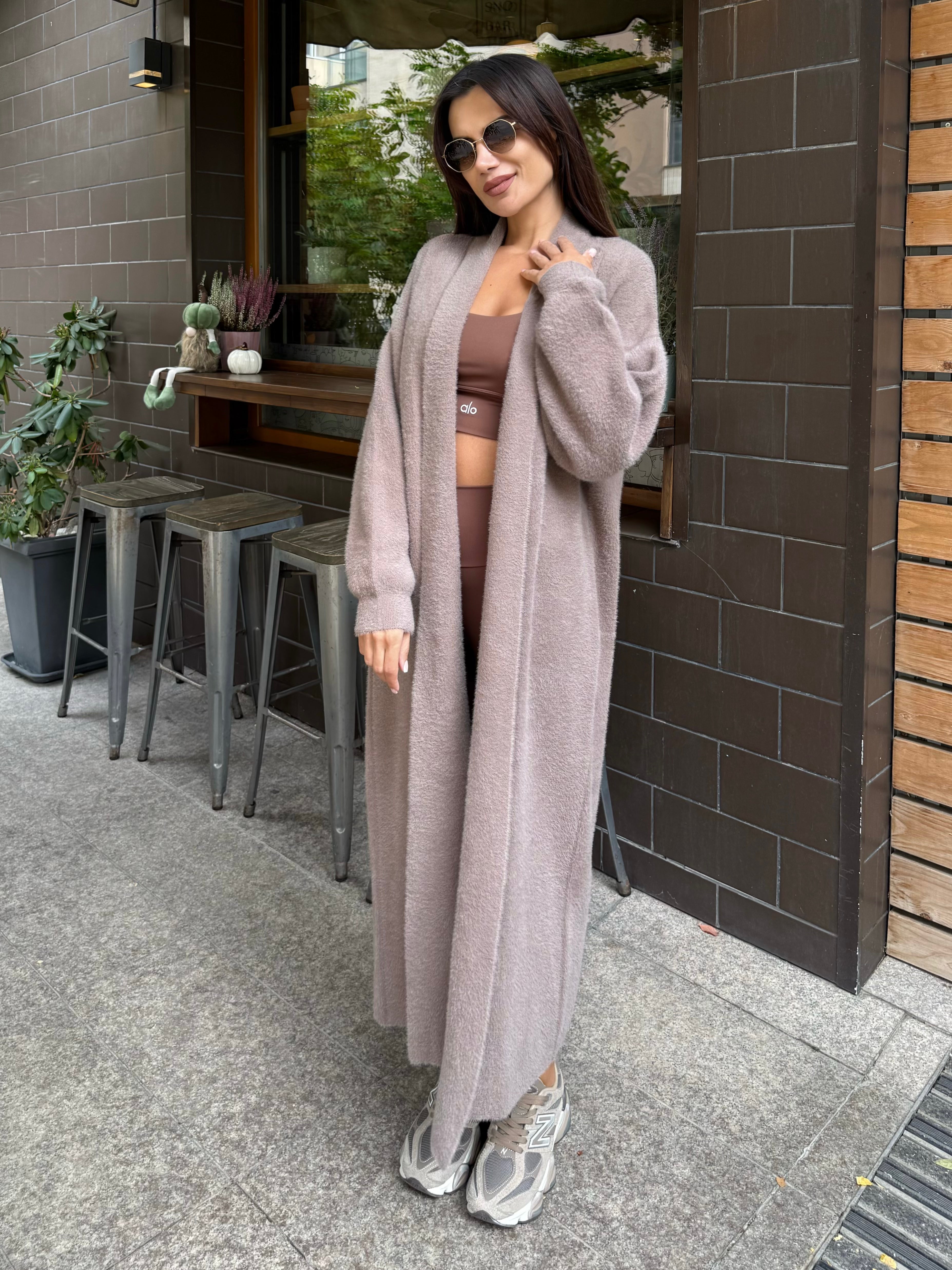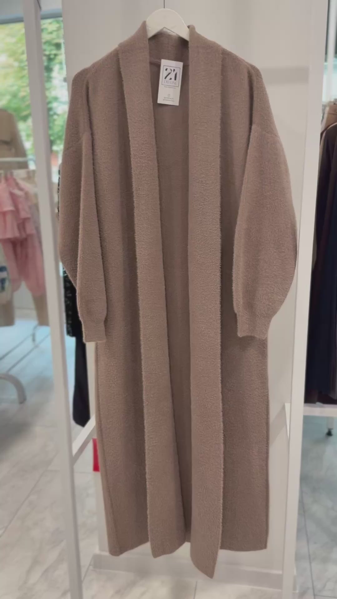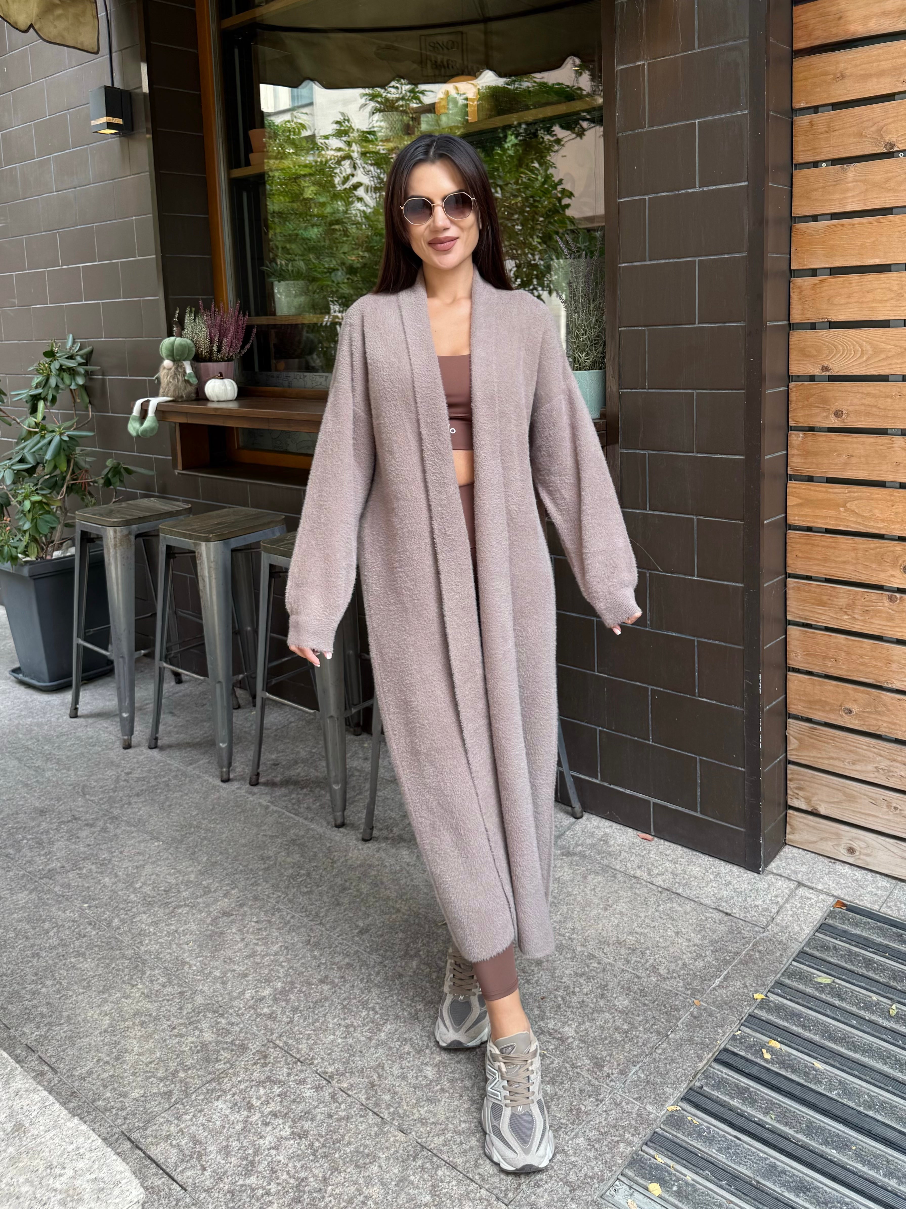 VEST made of fine elastic dense knit with a loose cut. The model can be worn as a jacket or coat.