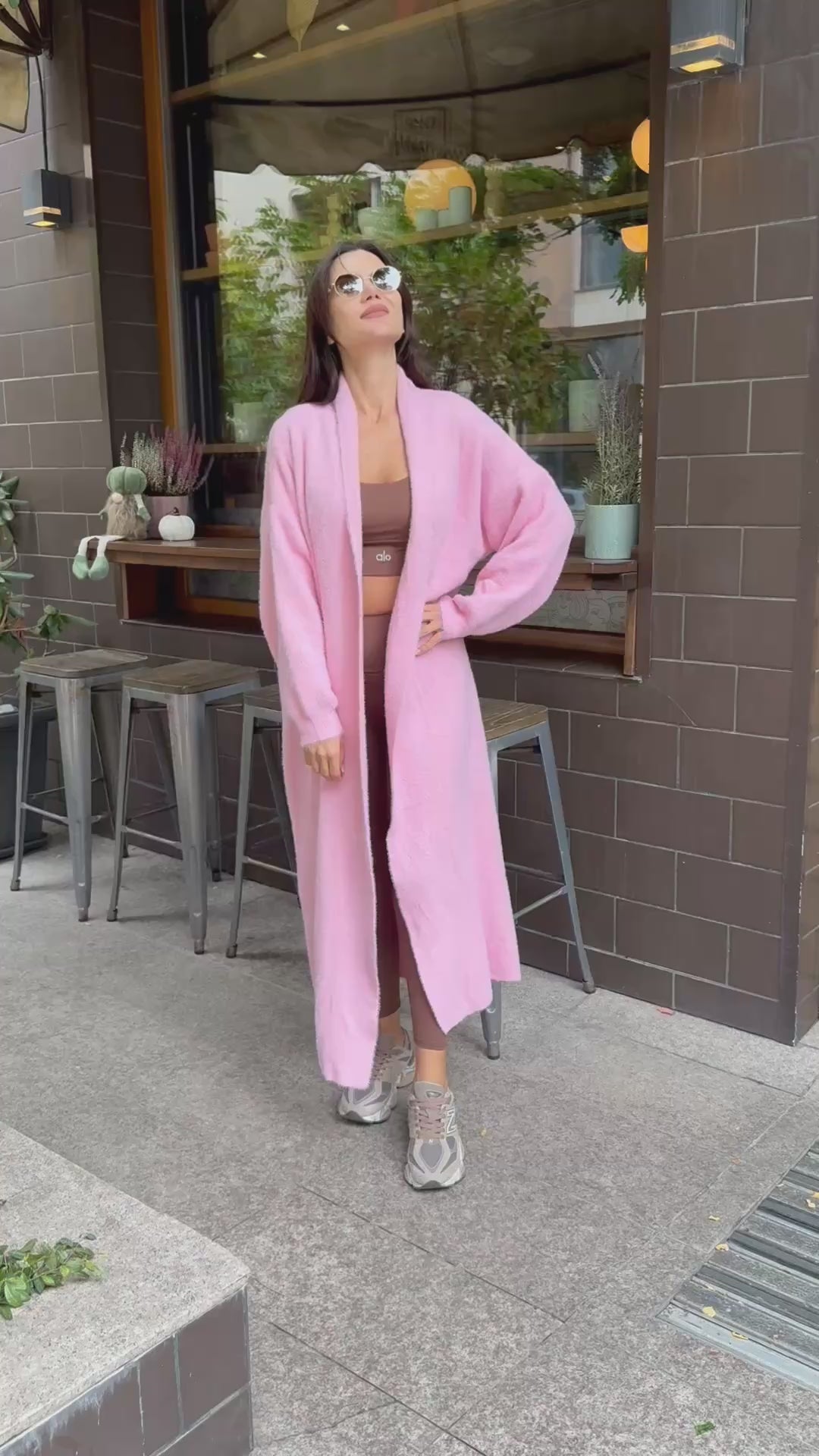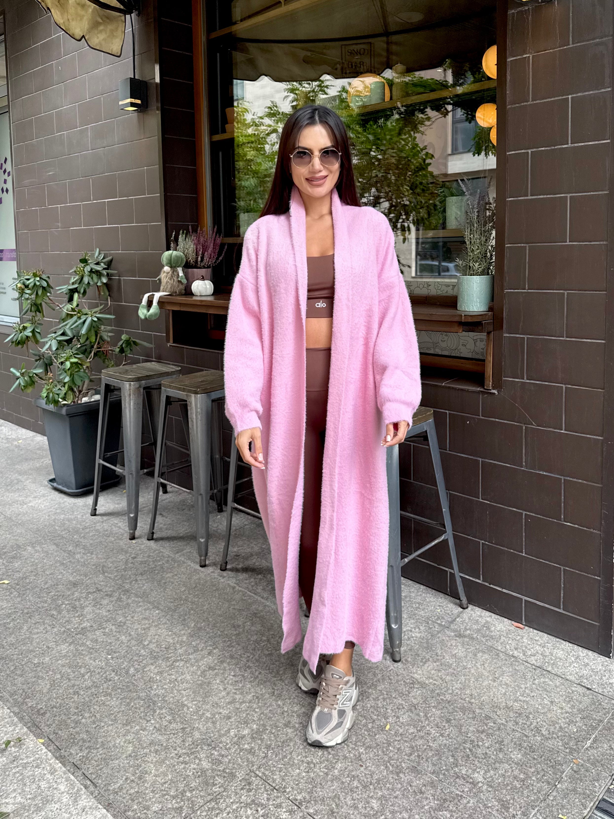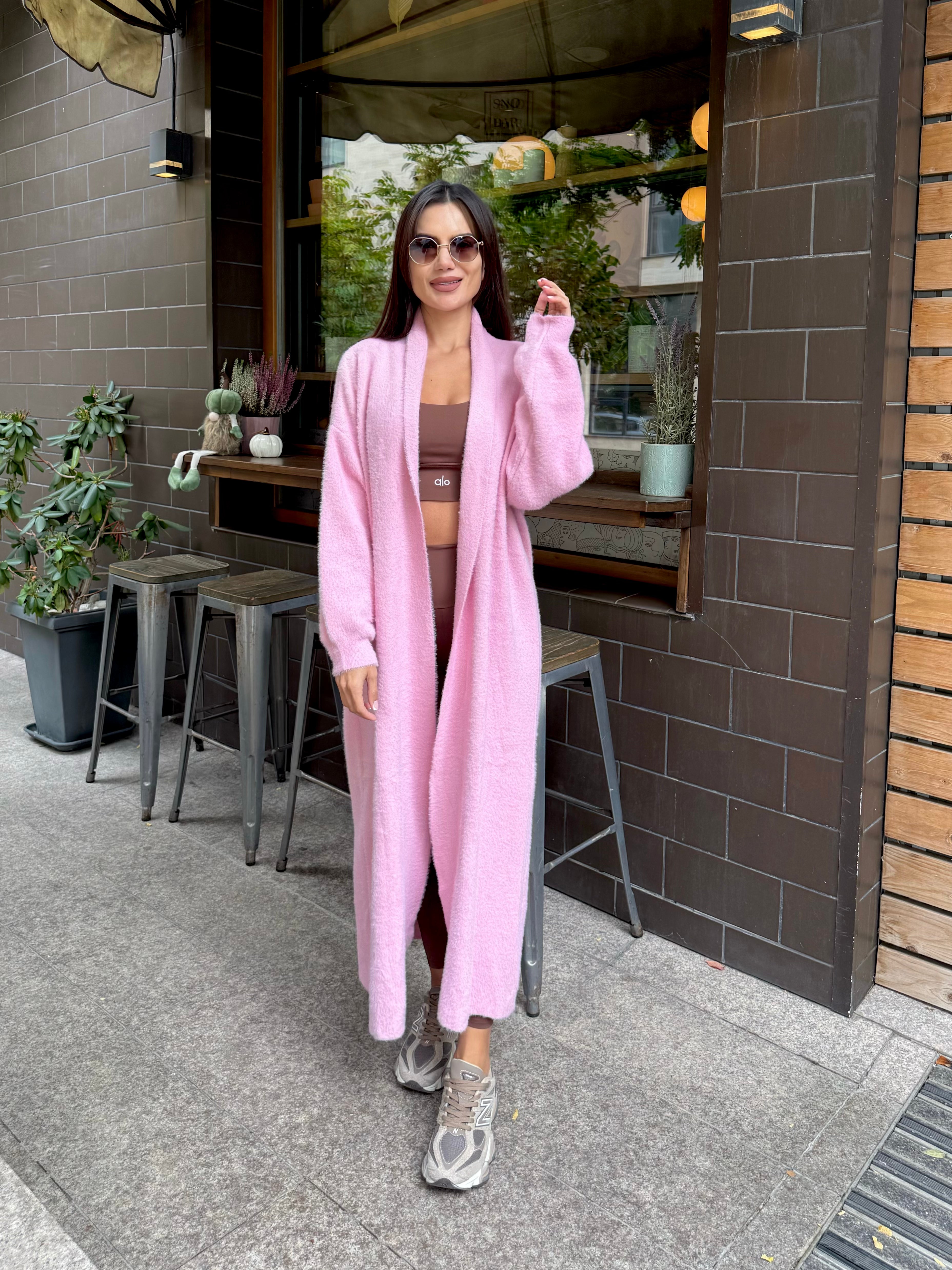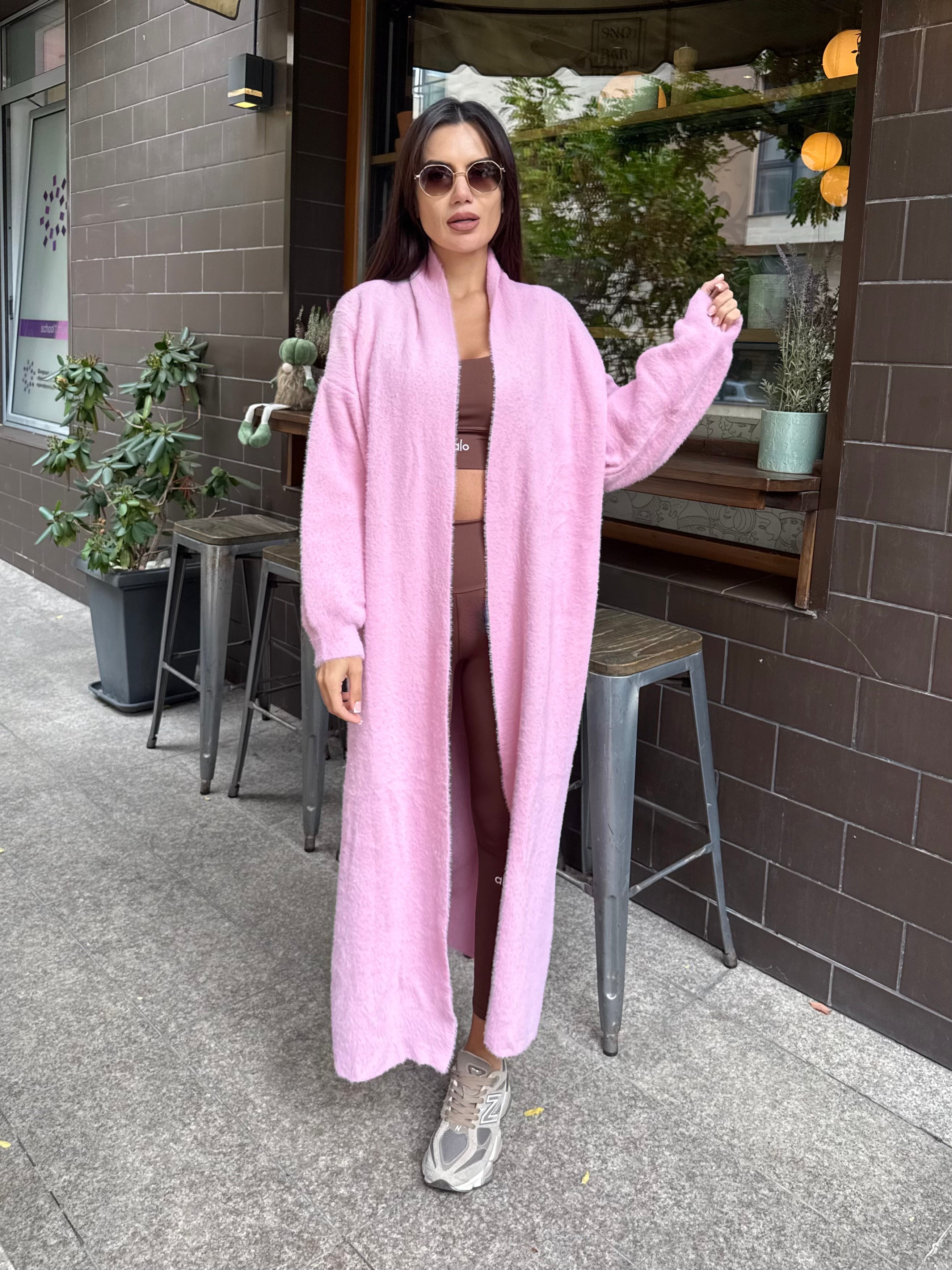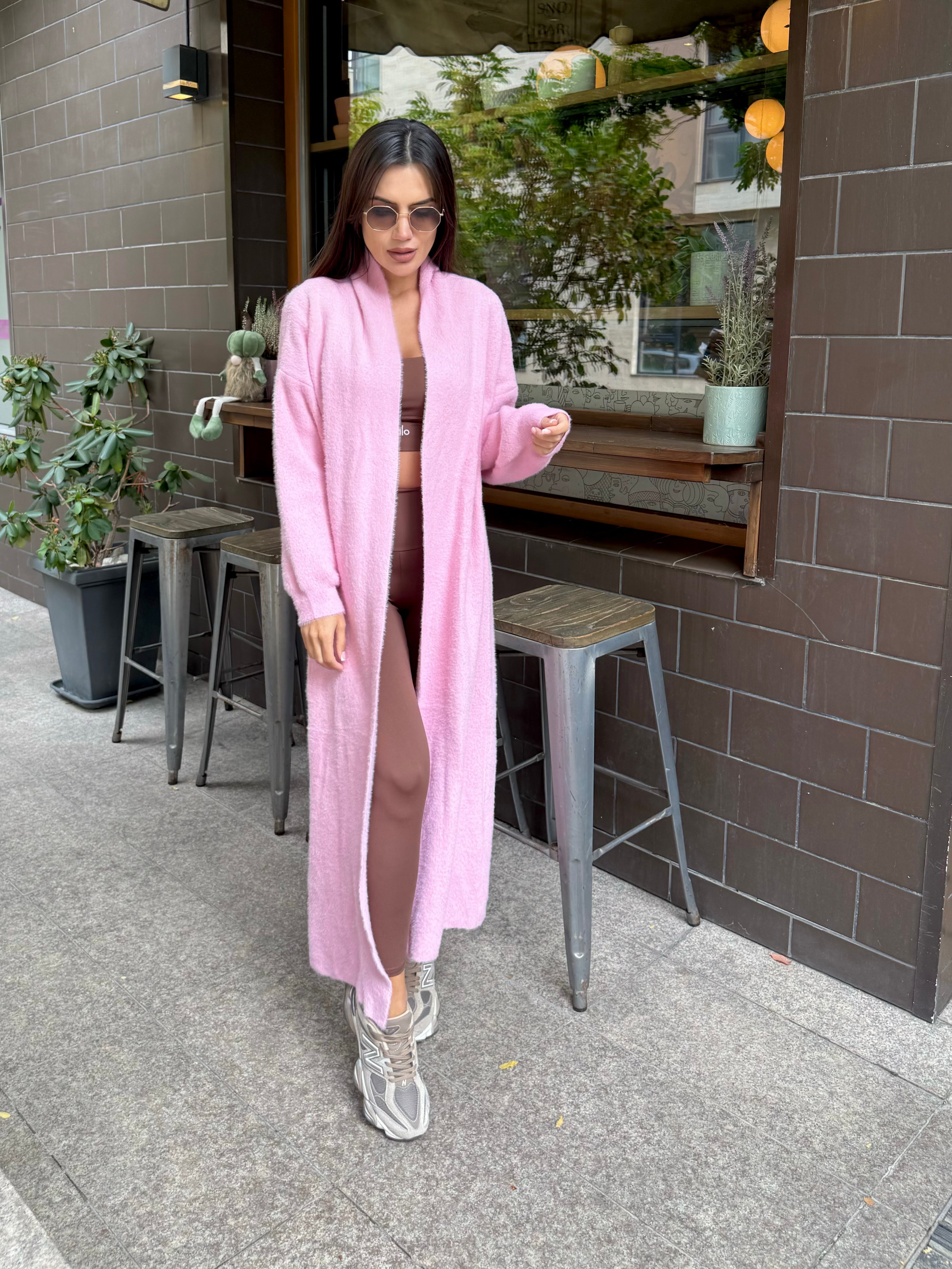 VEST made of fine elastic dense knit with a loose cut. The model can be worn as a jacket or coat.