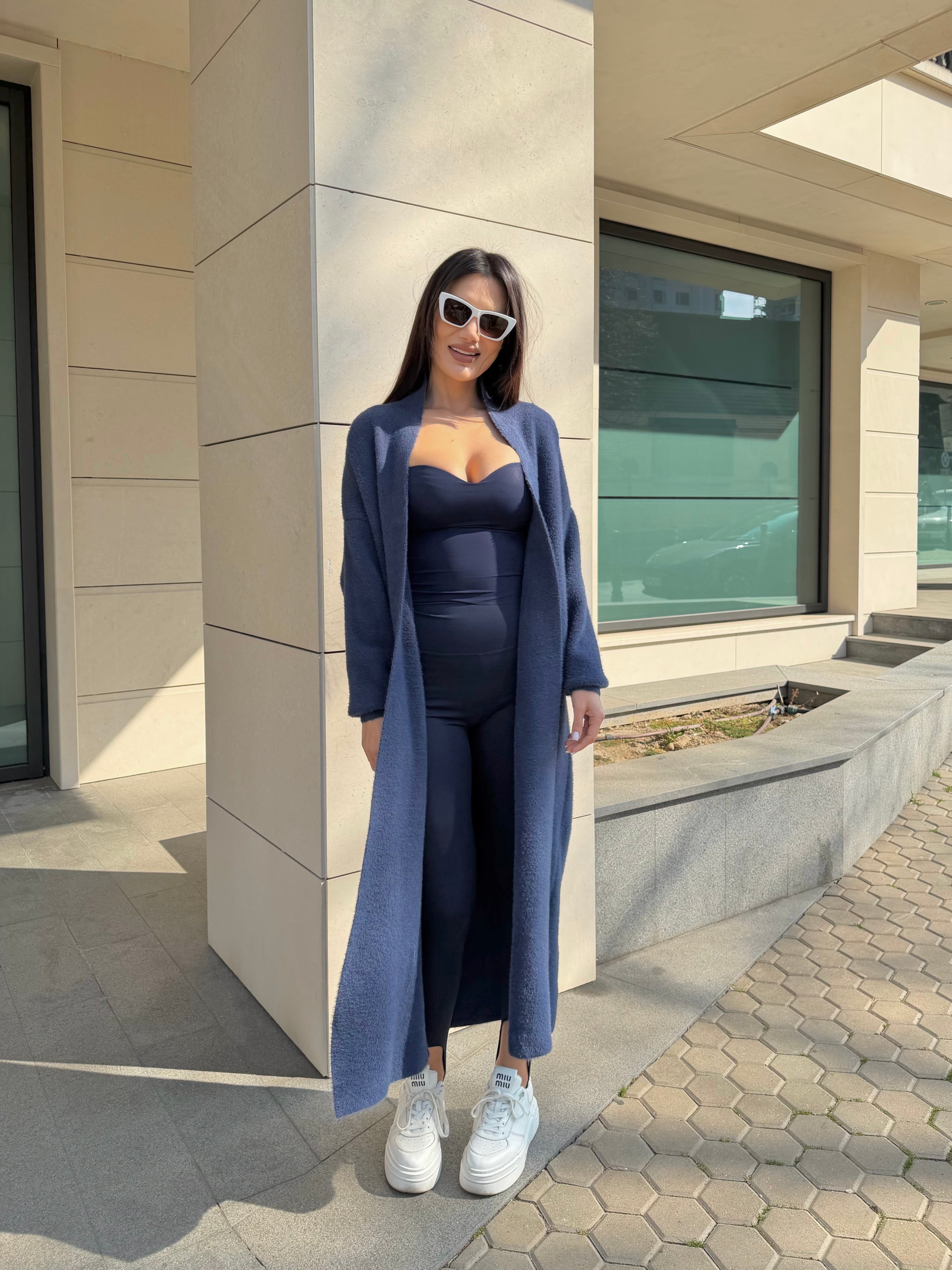 Elegant long vest in a refined navy shade (dark blue) – a symbol of timeless style and comfort.