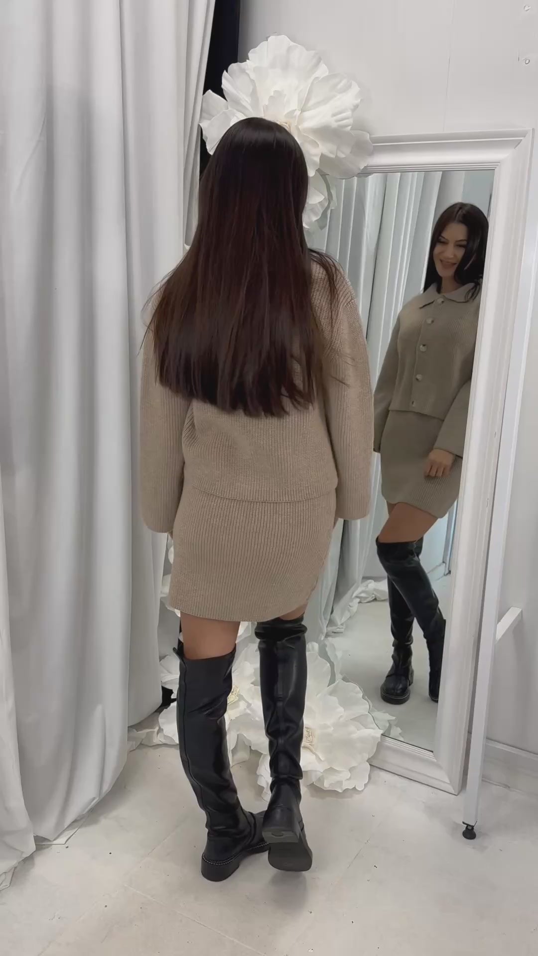 SKIRT: - waist circumference - 76 cm (stretches up to 100 cm), length - 45 cm.