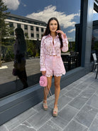 Immerse yourself in the tenderness of LACE BLOOM ROSE – an elegant two-piece set made of delicate floral lace. It combines a stylish long-sleeved shirt and high-waisted shorts for a perfect summer silhouette.