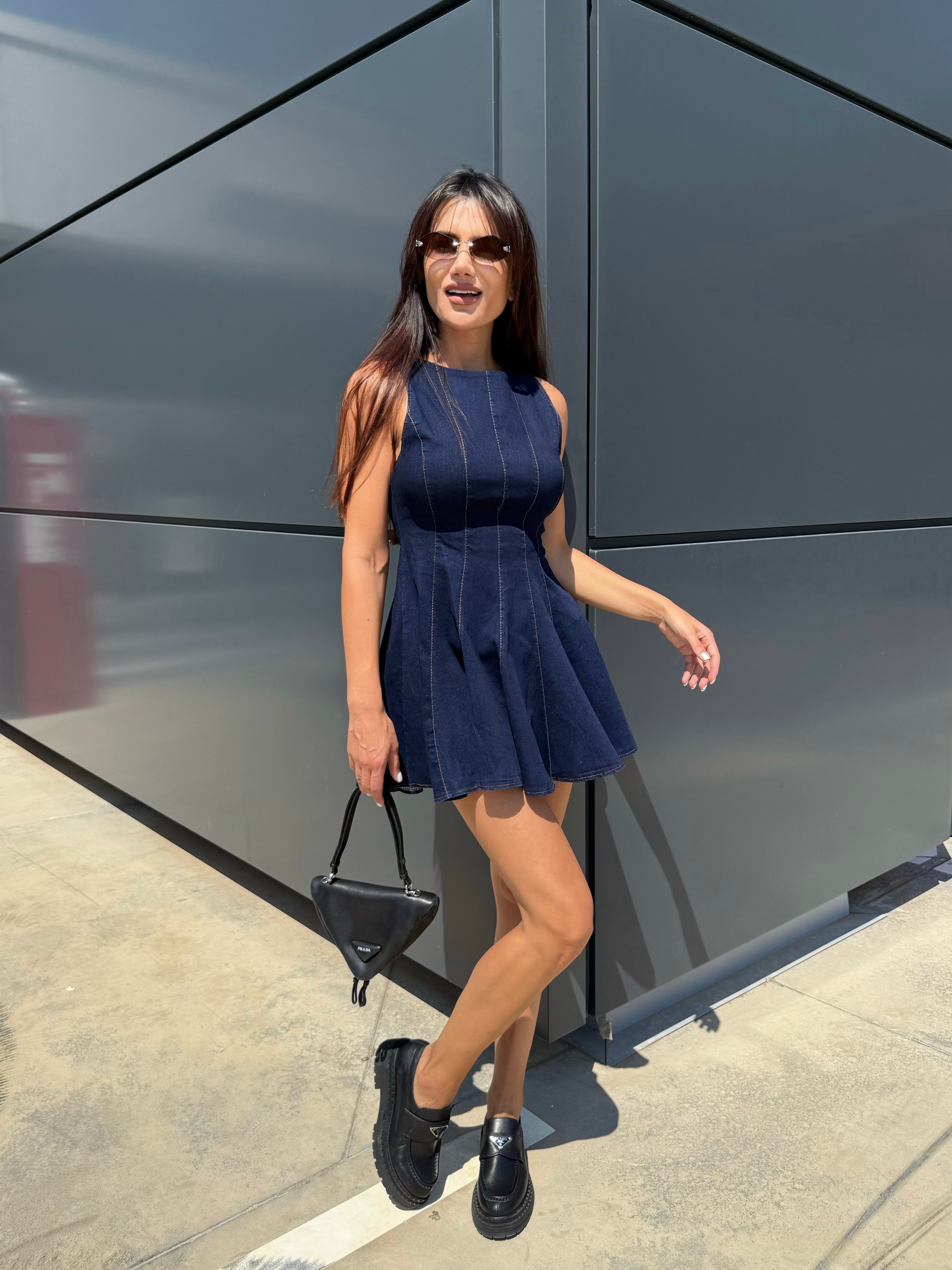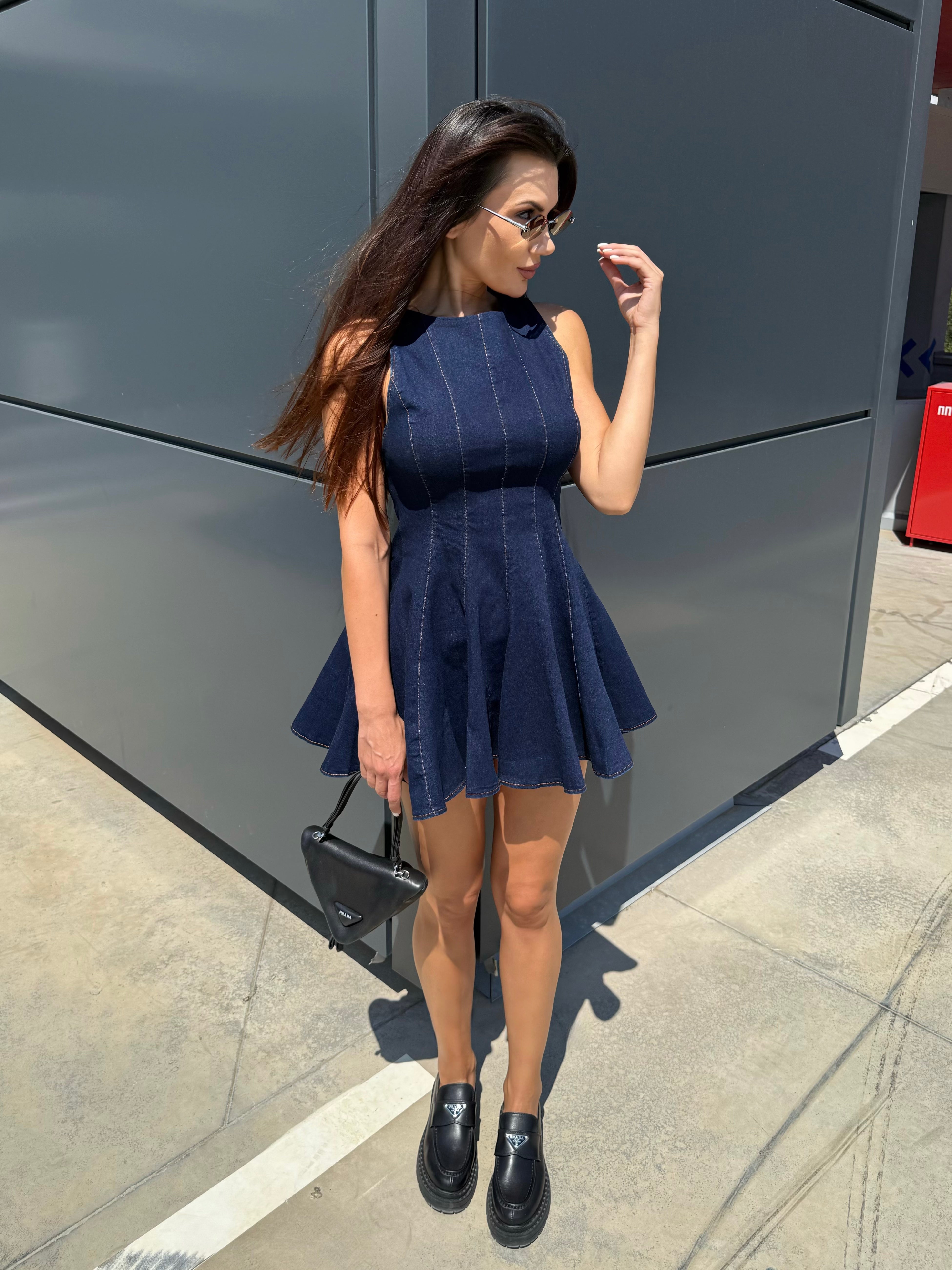 BLUE ICON – Denim mini dress with flared skirt