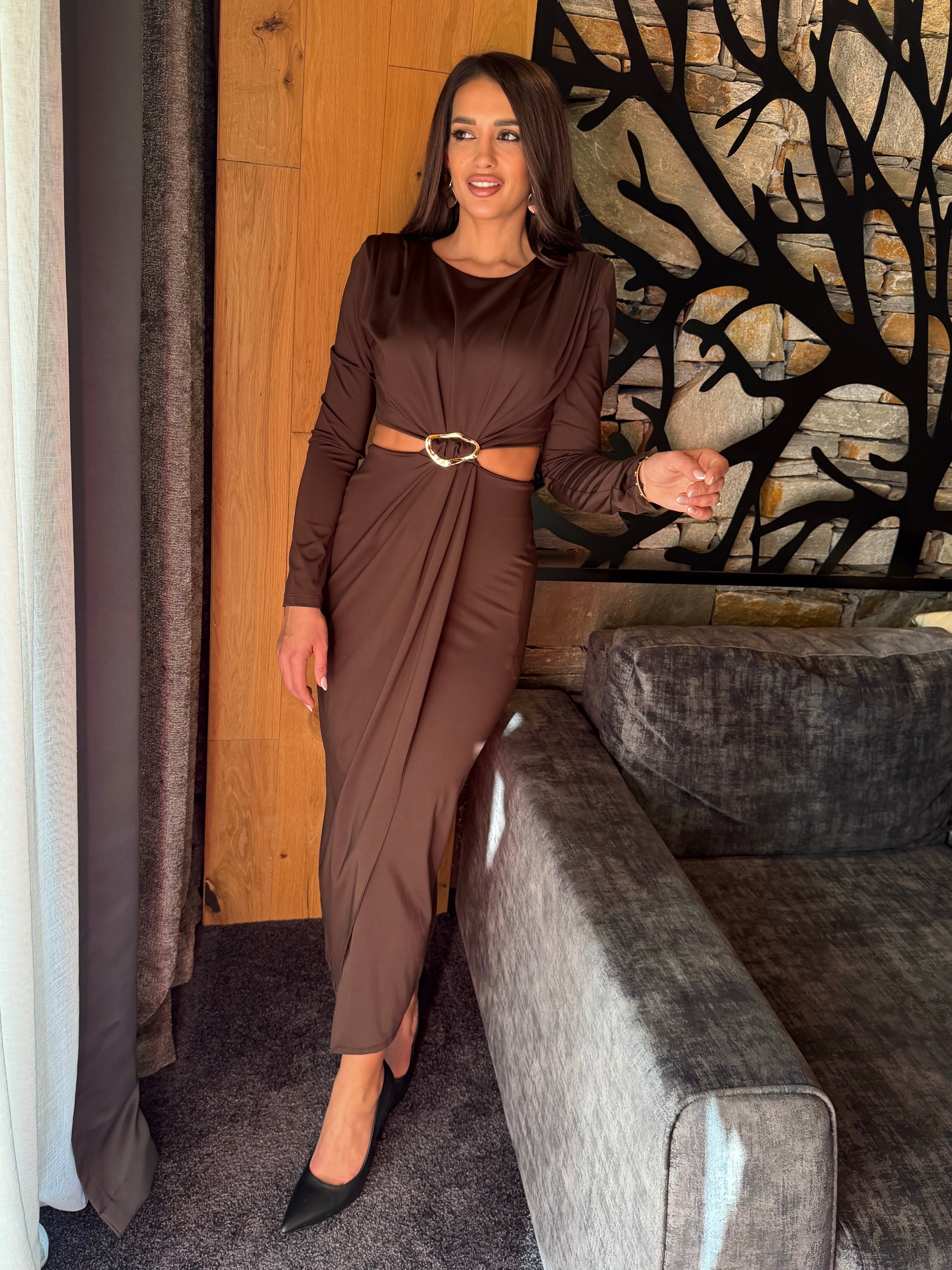 KIM GOLD dress is the perfect combination of elegance and minimalism. Made of fine, elastic fabric that emphasizes femininity and creates a slight draping effect. The gold detail at the waist gives a luxurious look and accentuates the silhouette. An ideal choice for special occasions, evening events or stylish daytime outings.
