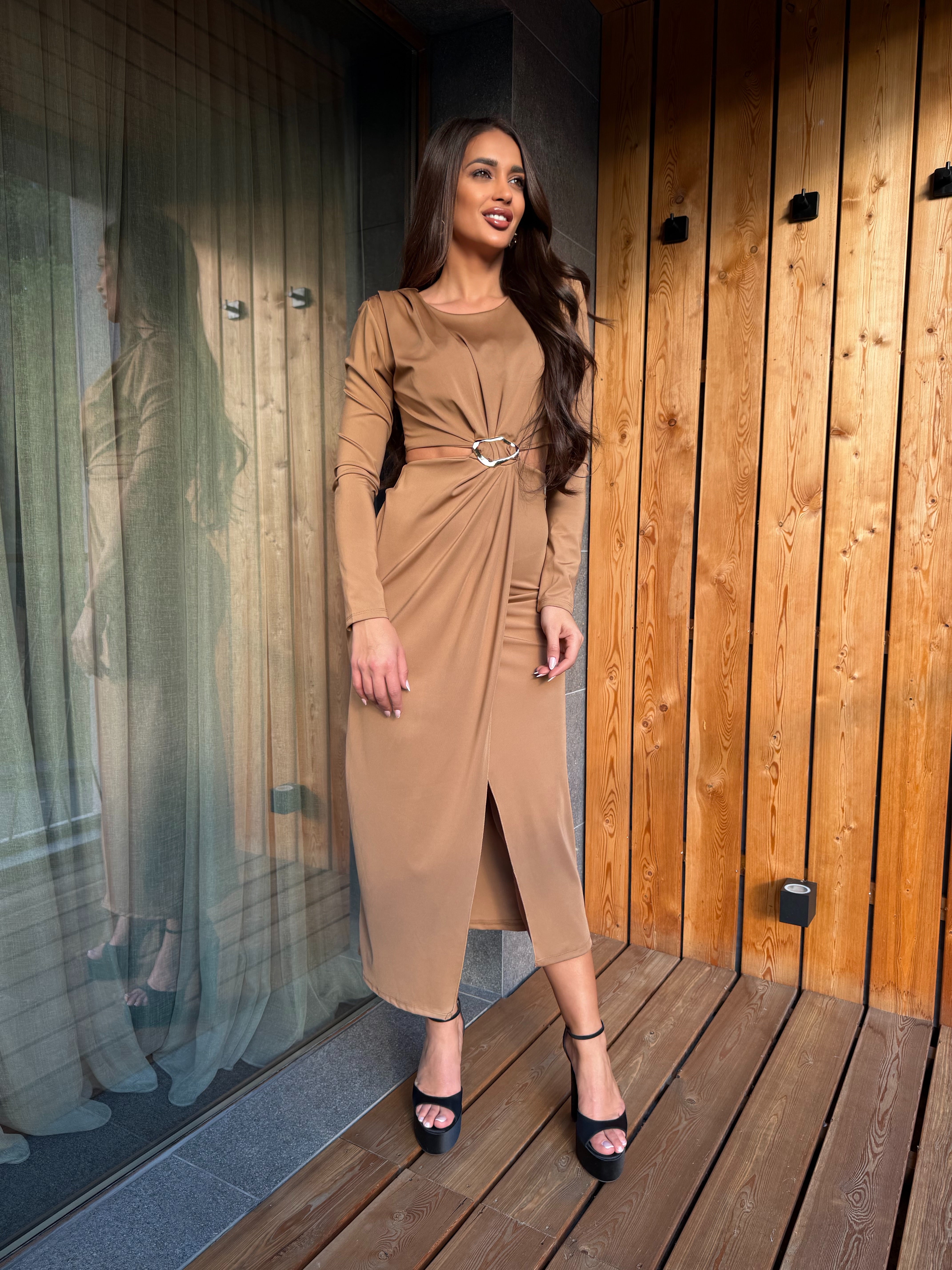 KIM GOLD dress is the perfect combination of elegance and minimalism. Made of fine, elastic fabric that emphasizes femininity and creates a slight draping effect. The gold detail at the waist gives a luxurious look and accentuates the silhouette. An ideal choice for special occasions, evening events or stylish daytime outings.