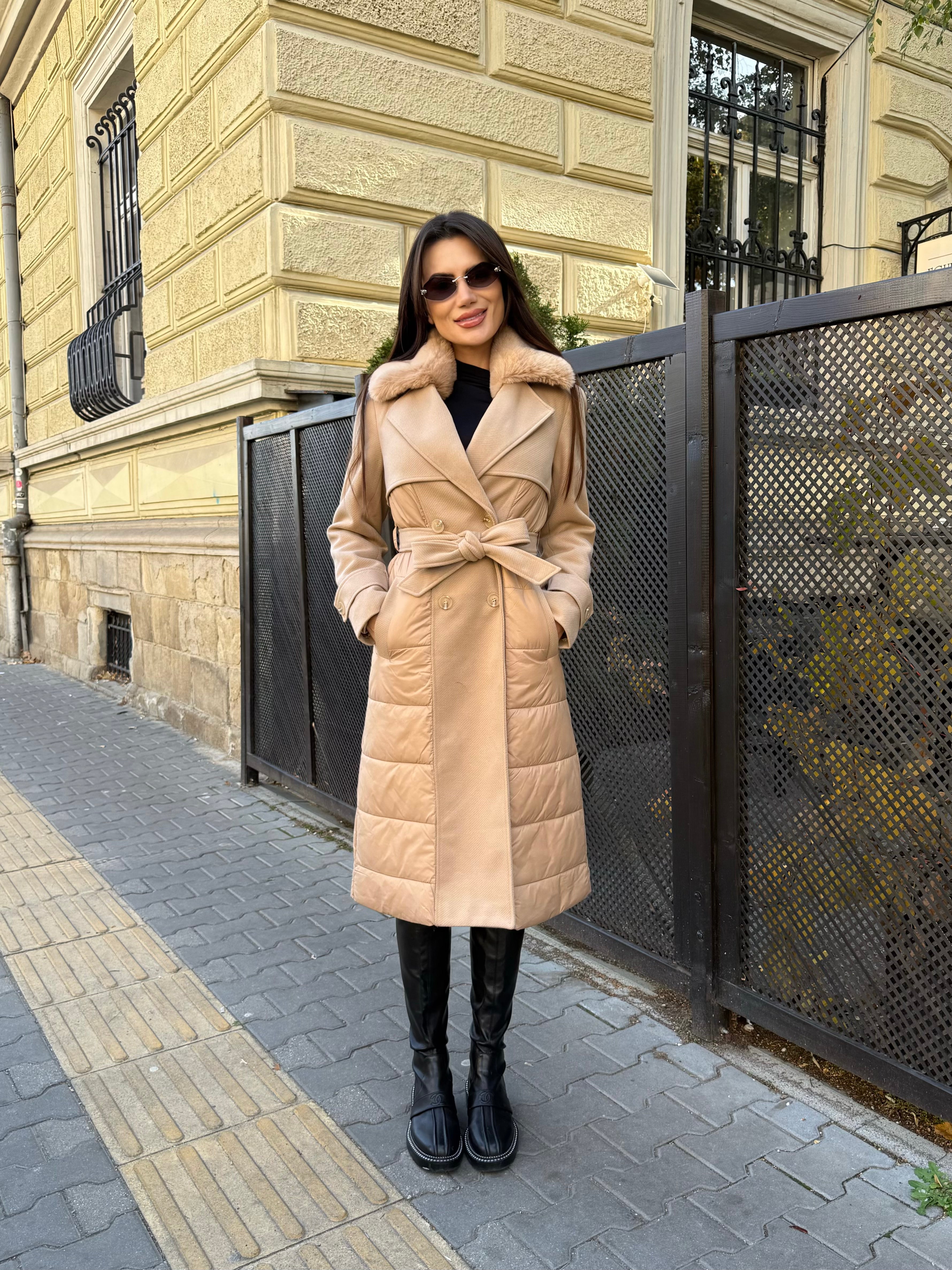 - The hood is decorated with high-class ECO fur leather, which is attached with buttons.
