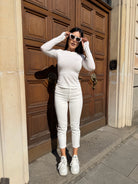 The high waist defines the silhouette, while the relaxed fit through the hips and gently tapered leg create a modern, balanced look.