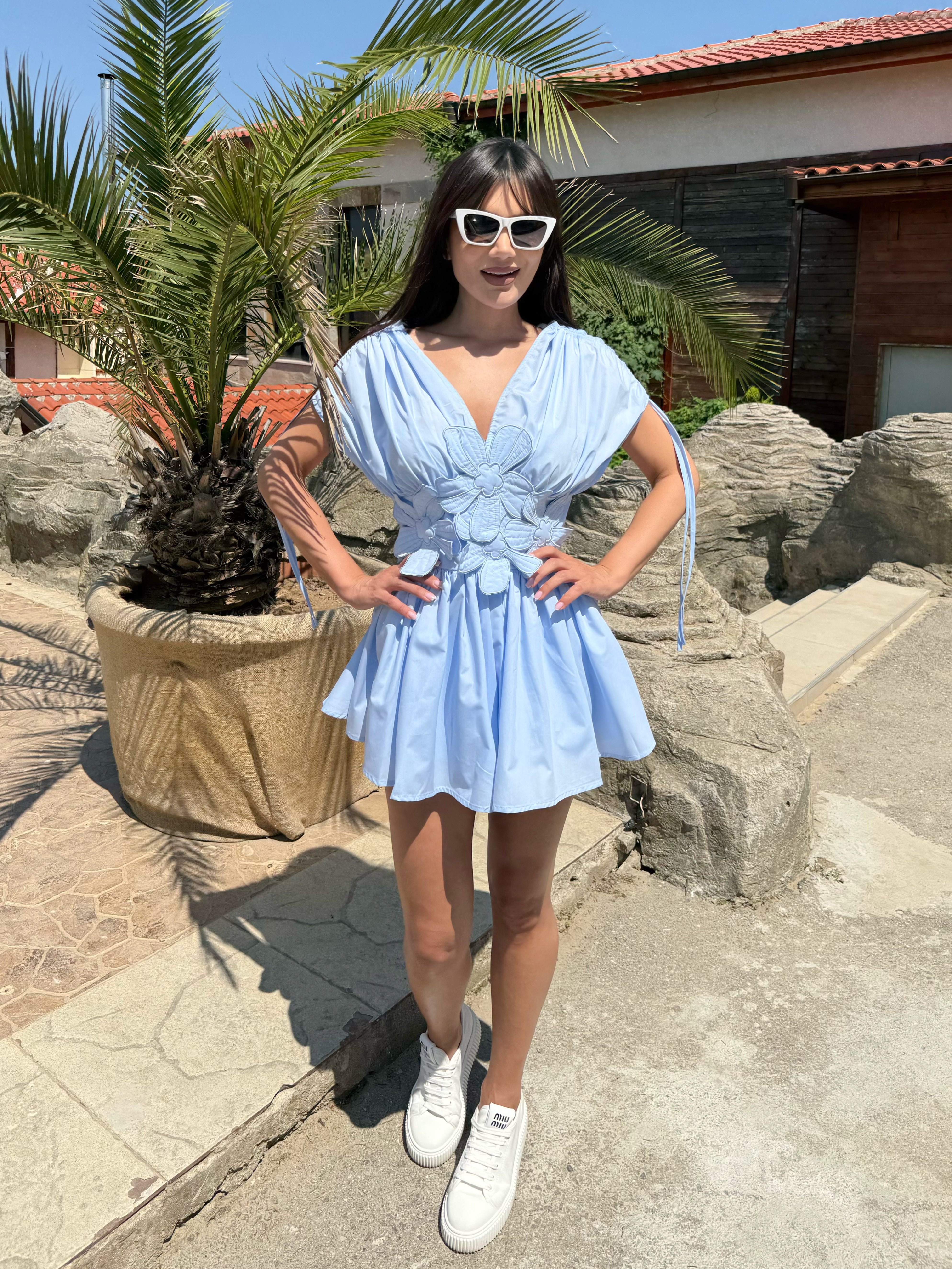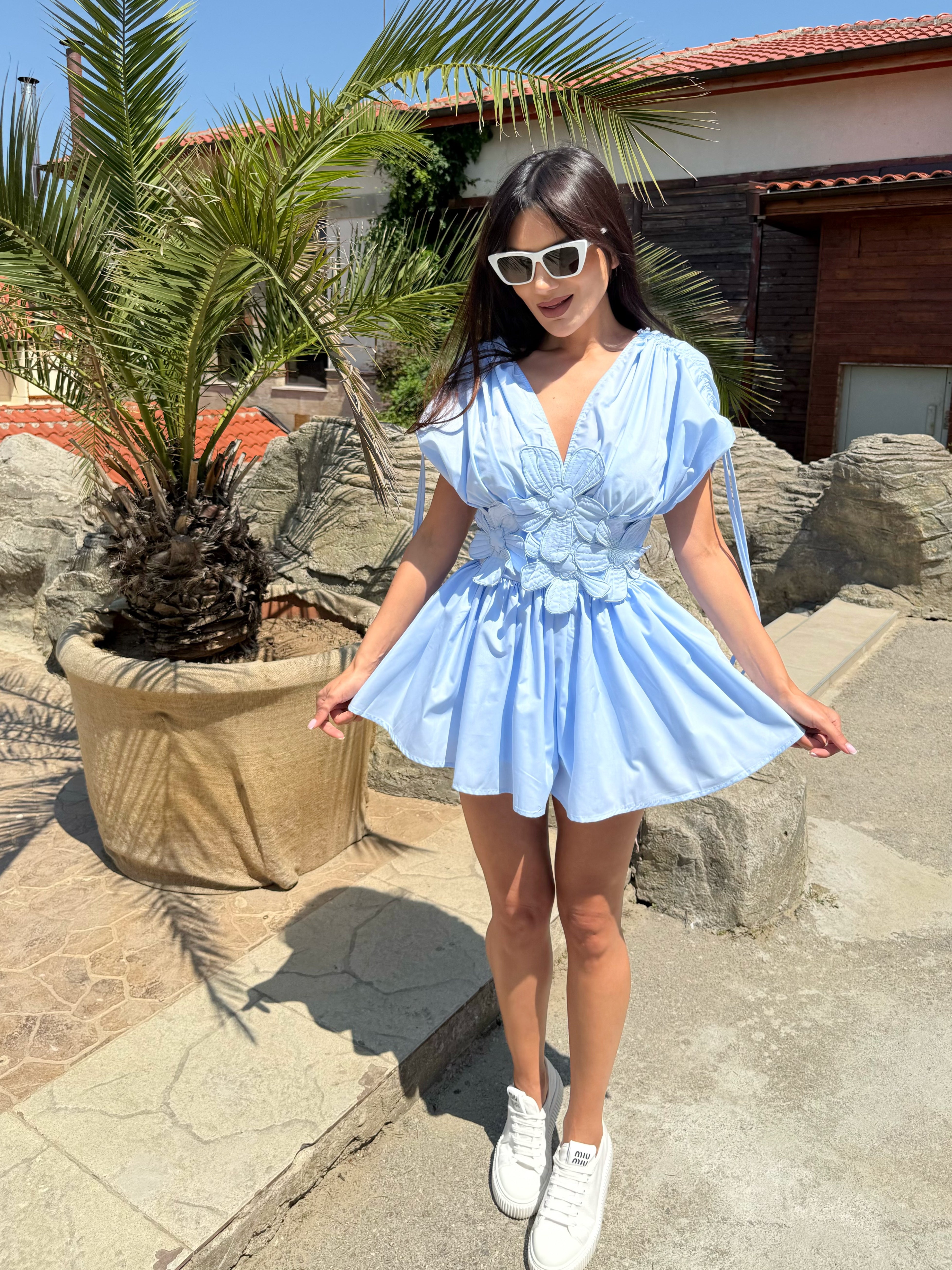 Give yourself a feeling of lightness and style with the Bloom jumpsuit - the perfect combination of comfort and elegance. Made of airy fabric, with a defined waist and unique 3D floral applications, this model is designed to grab attention. The loose cut of the shorts and the spectacular volume at the top make it ideal for summer walks, vacations and urban looks.