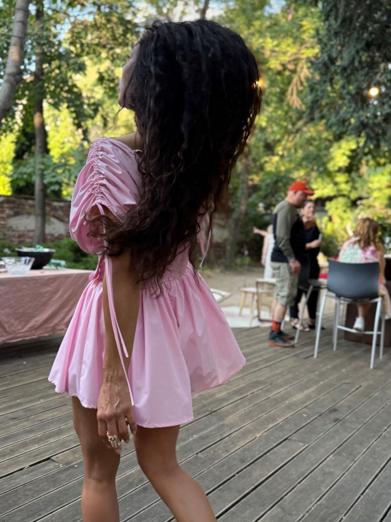 • Short, with wide sleeves and a V-neckline