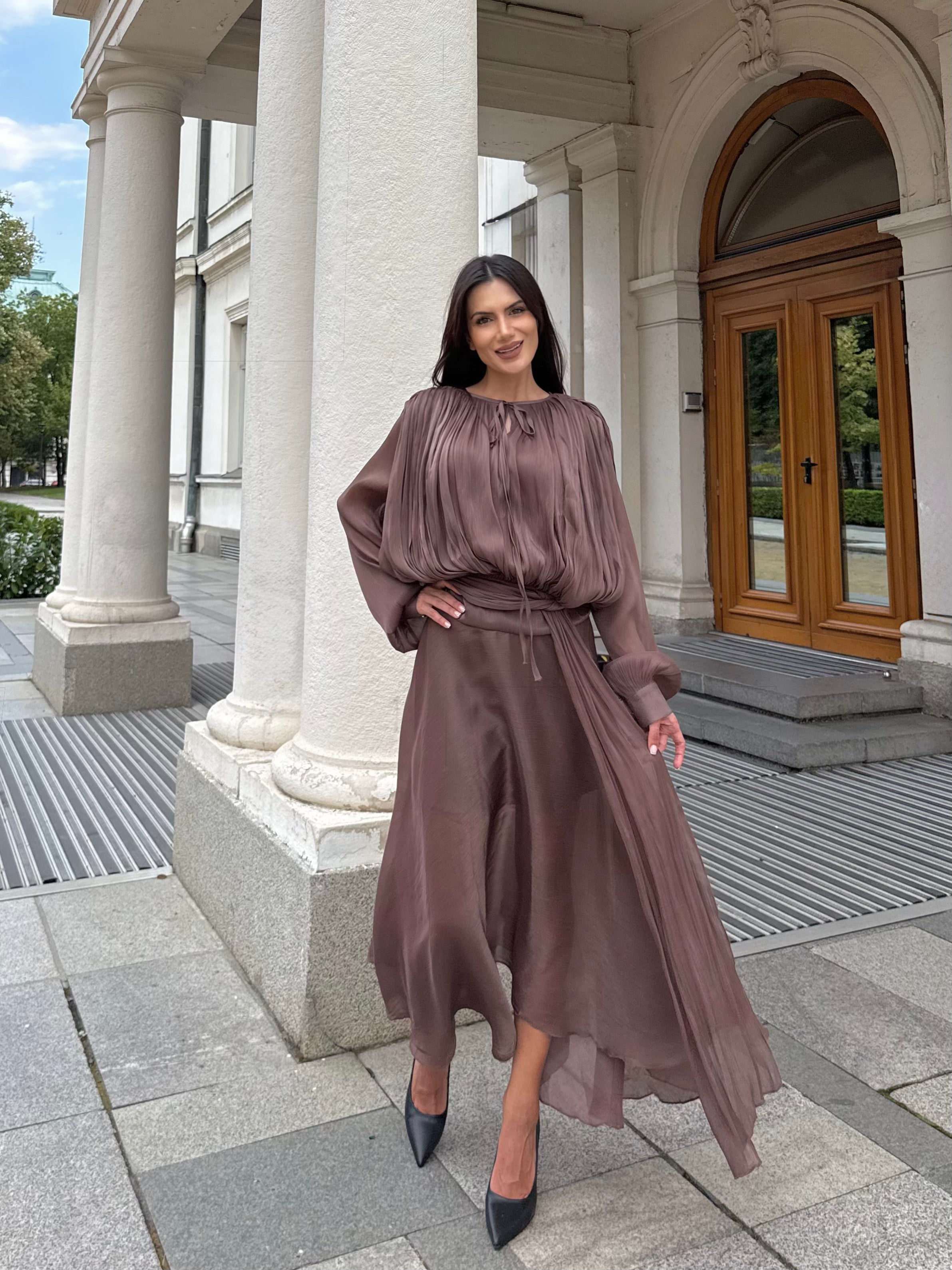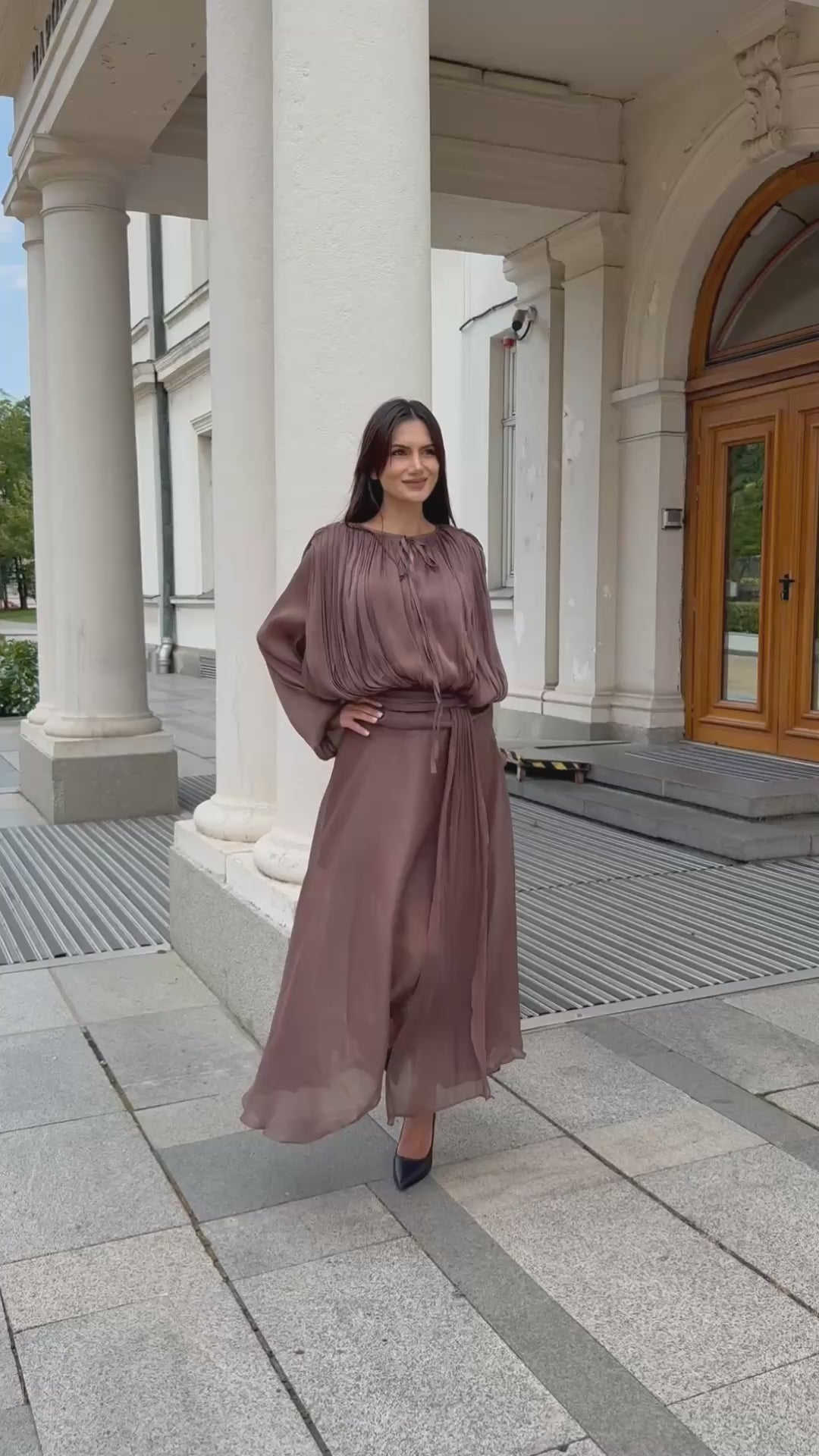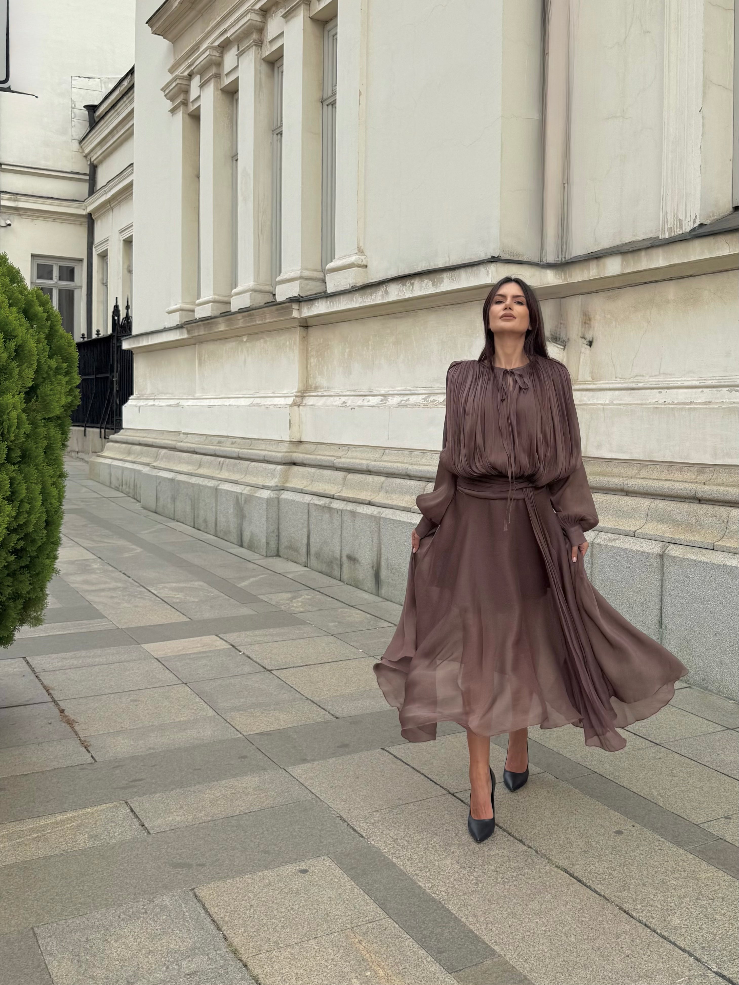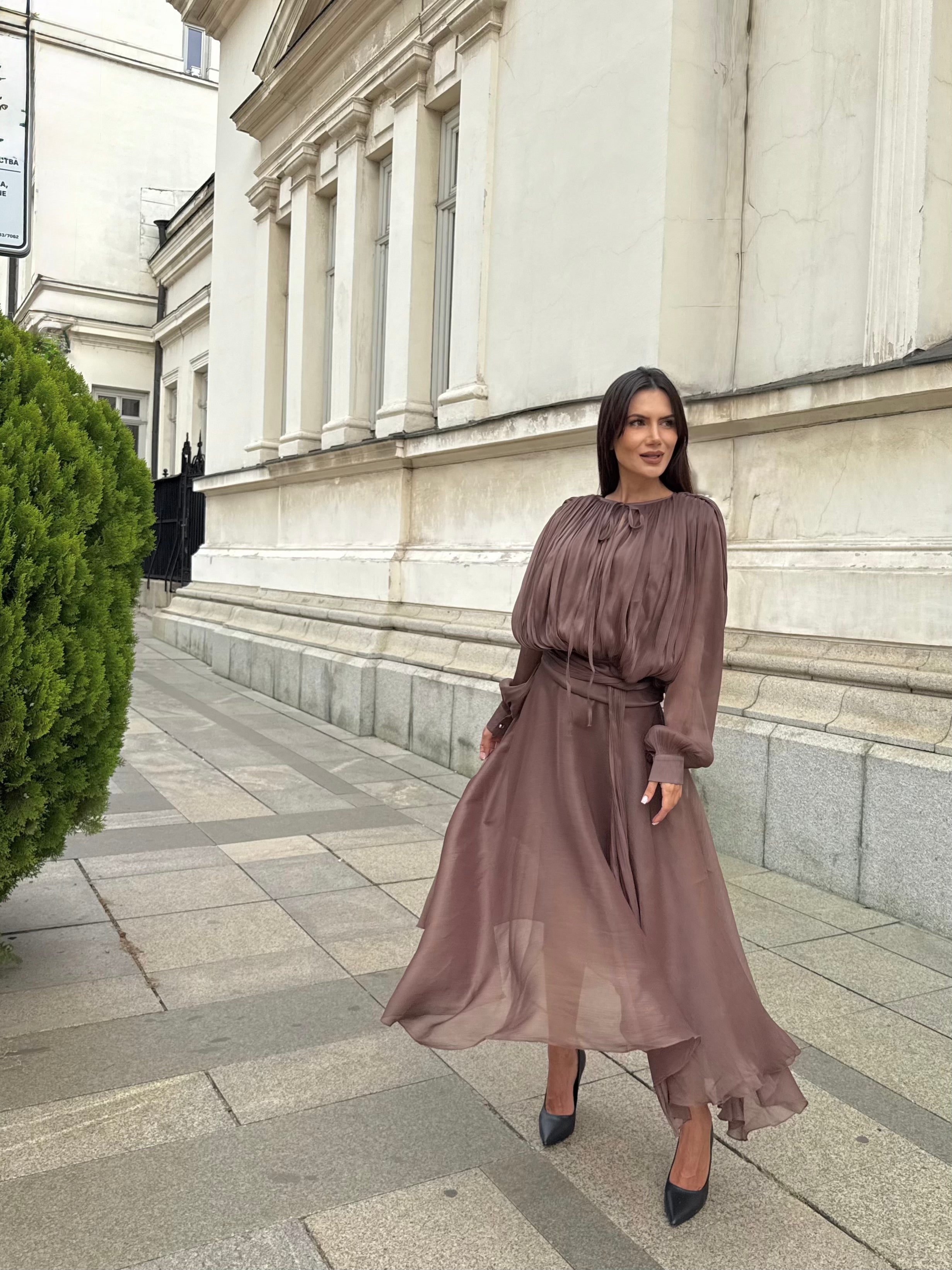 Suitable for everyday wear, as well as for traveling or city walks. Fastens with a hidden zipper at the back.