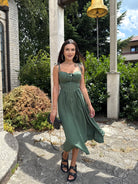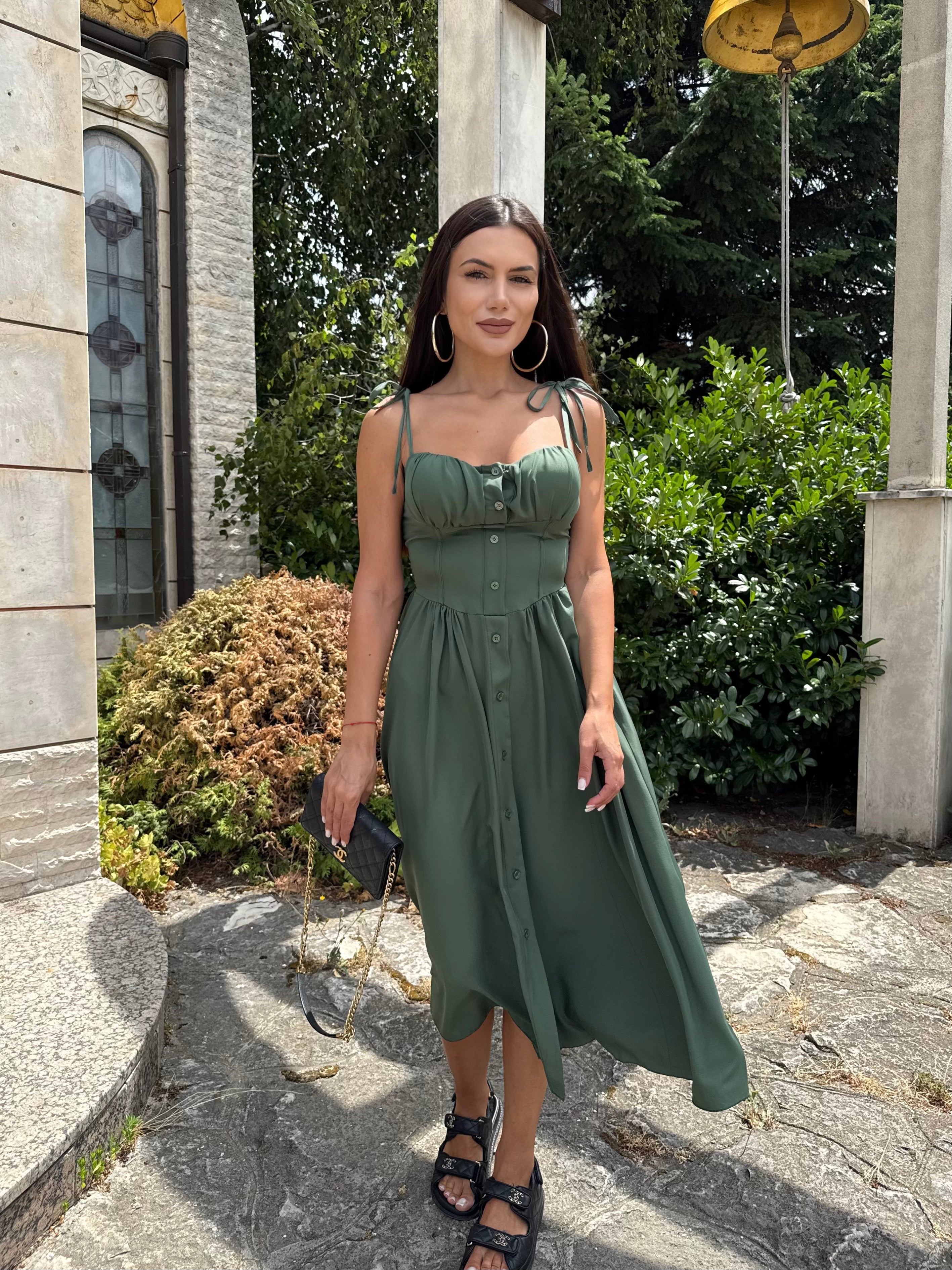 An elegant dress with an asymmetrical neckline and decorative 3D flowers on the straps – an accent that adds freshness and feminine charm. The “Amelie” model is perfect for special occasions, summer evenings or stylish daytime events.