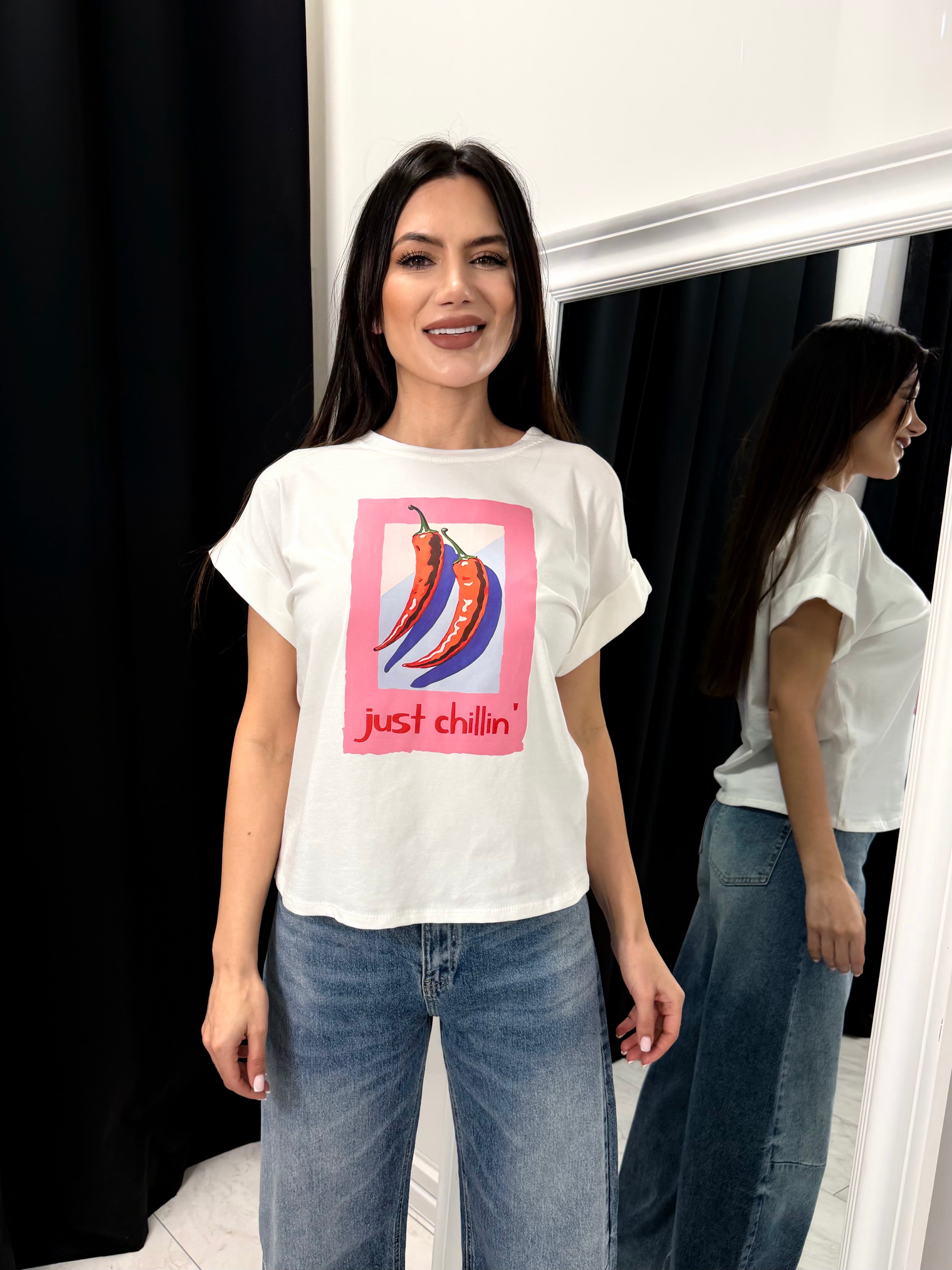 Designed in a relaxed silhouette with a soft stretch cotton blend, this statement T-shirt combines comfort with bold personality. The vibrant chilli print adds a pop-art twist, making it the perfect accent piece for effortless casual looks.