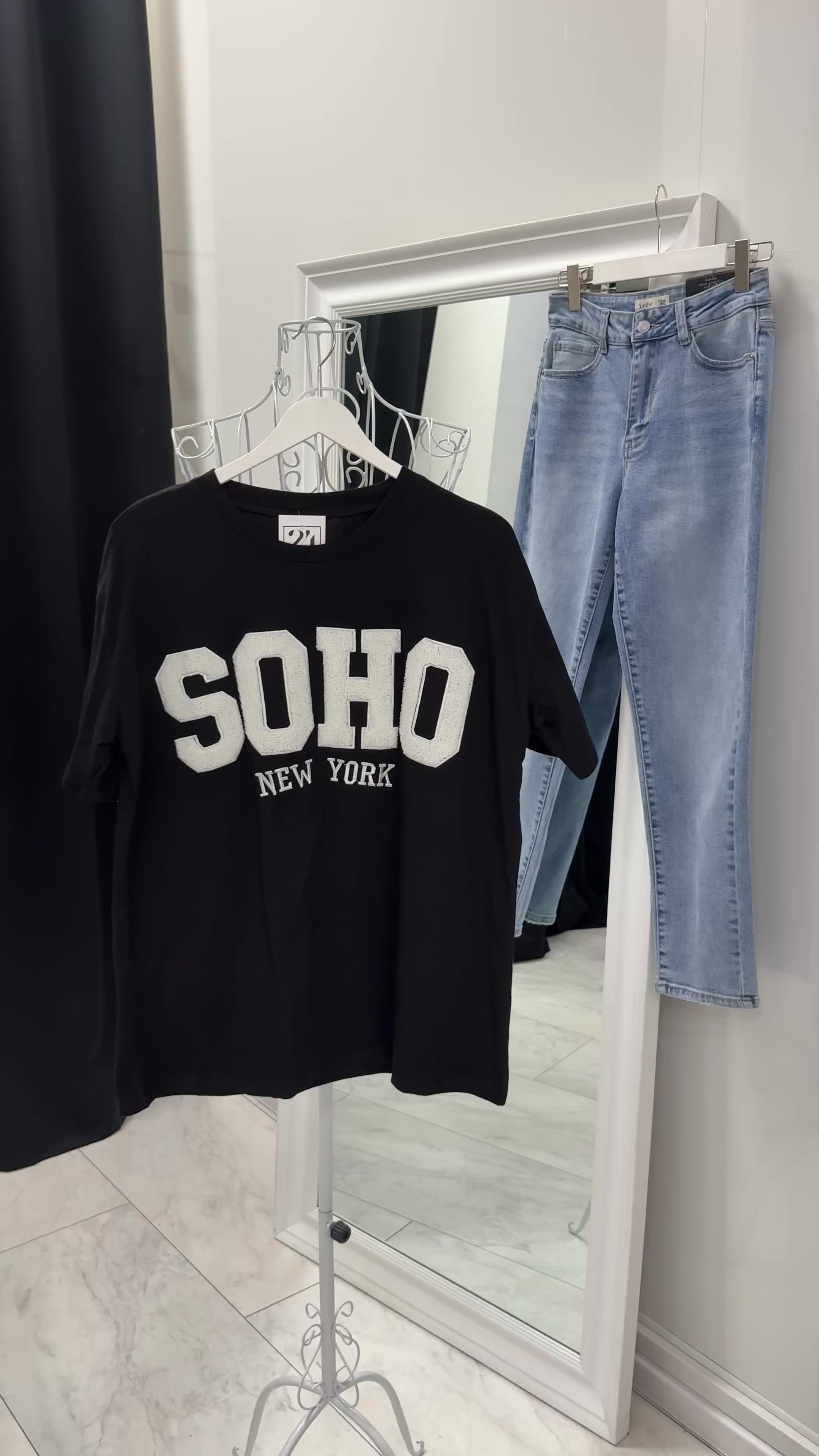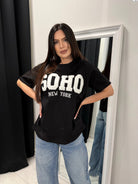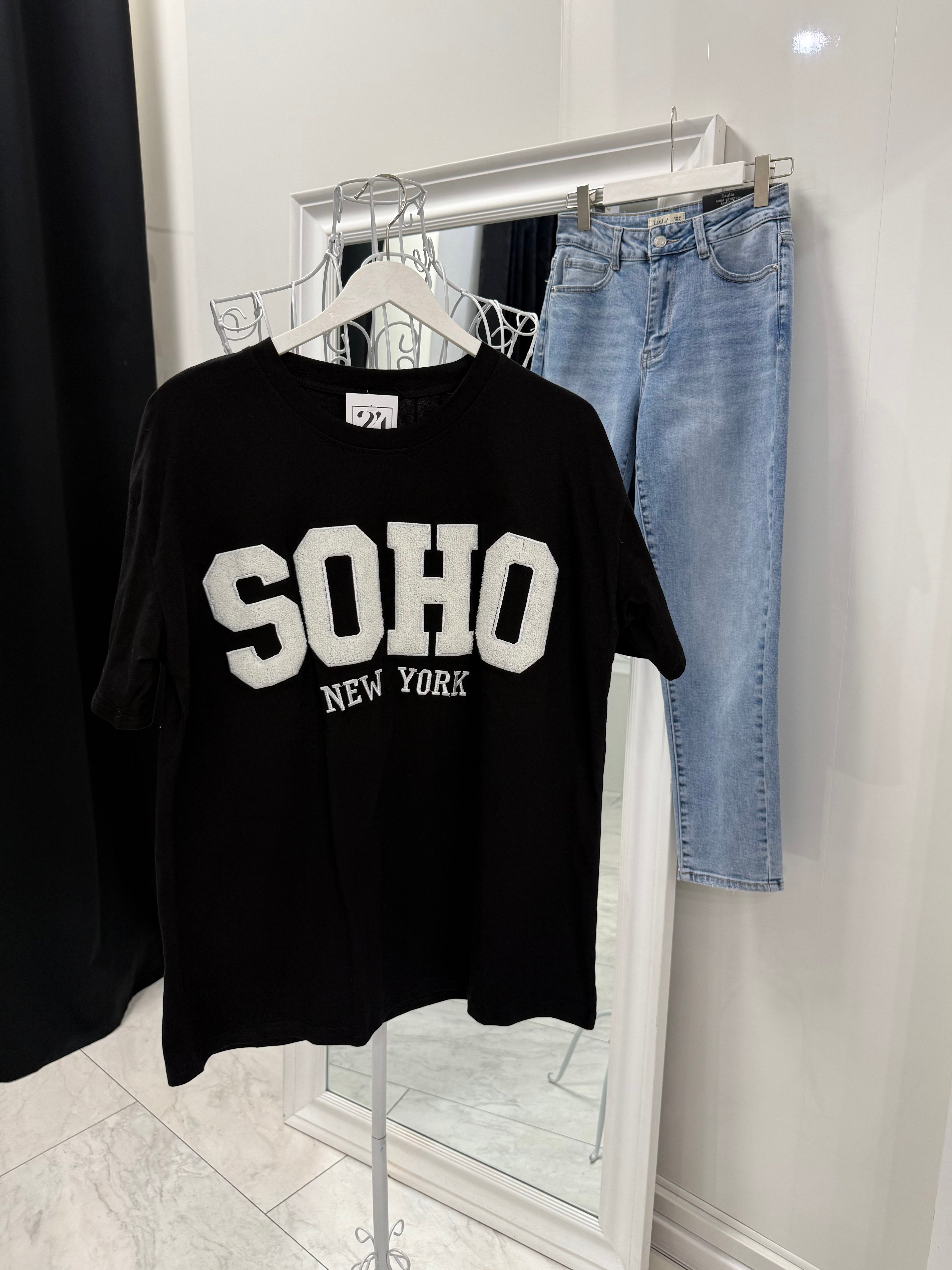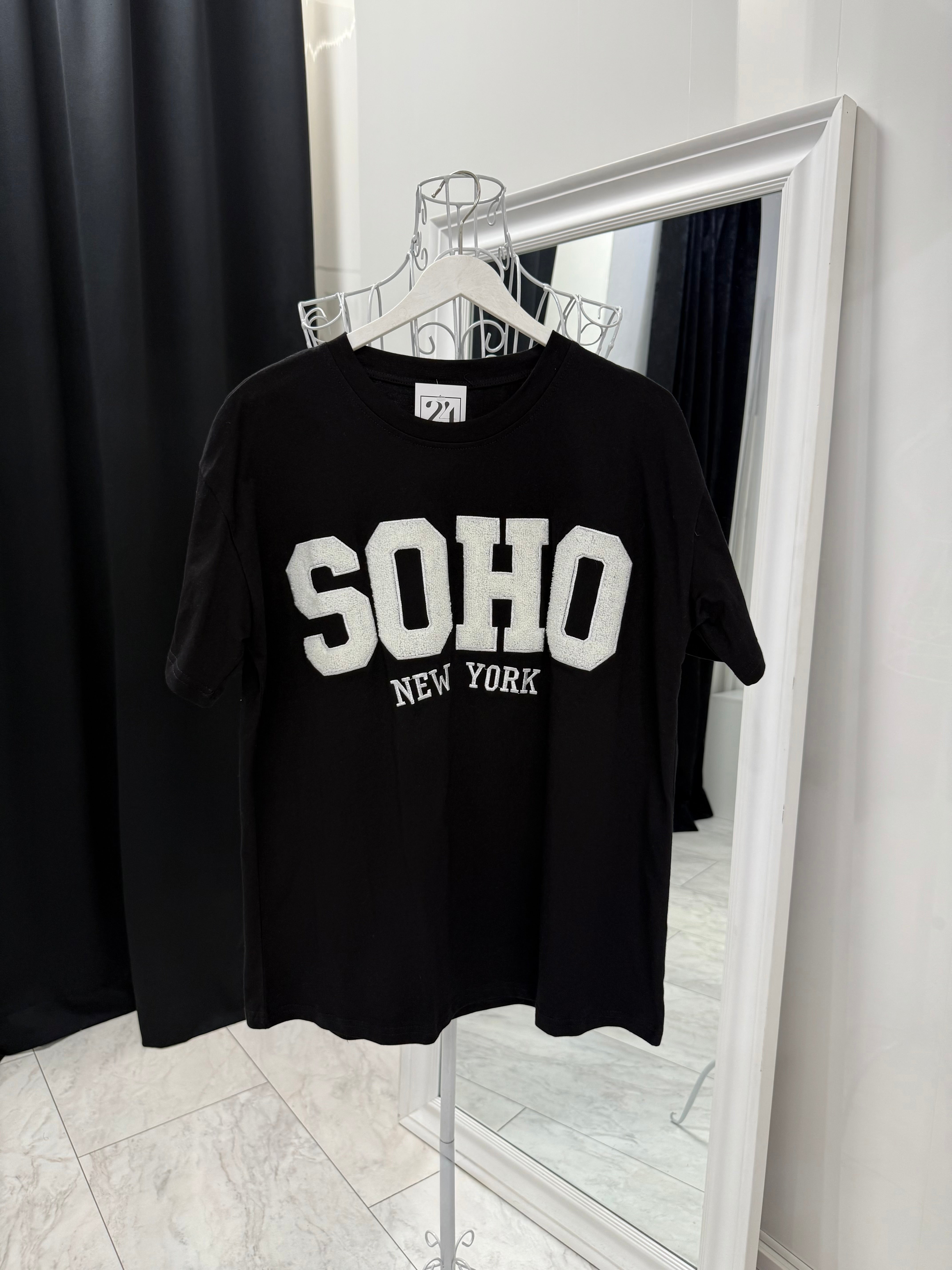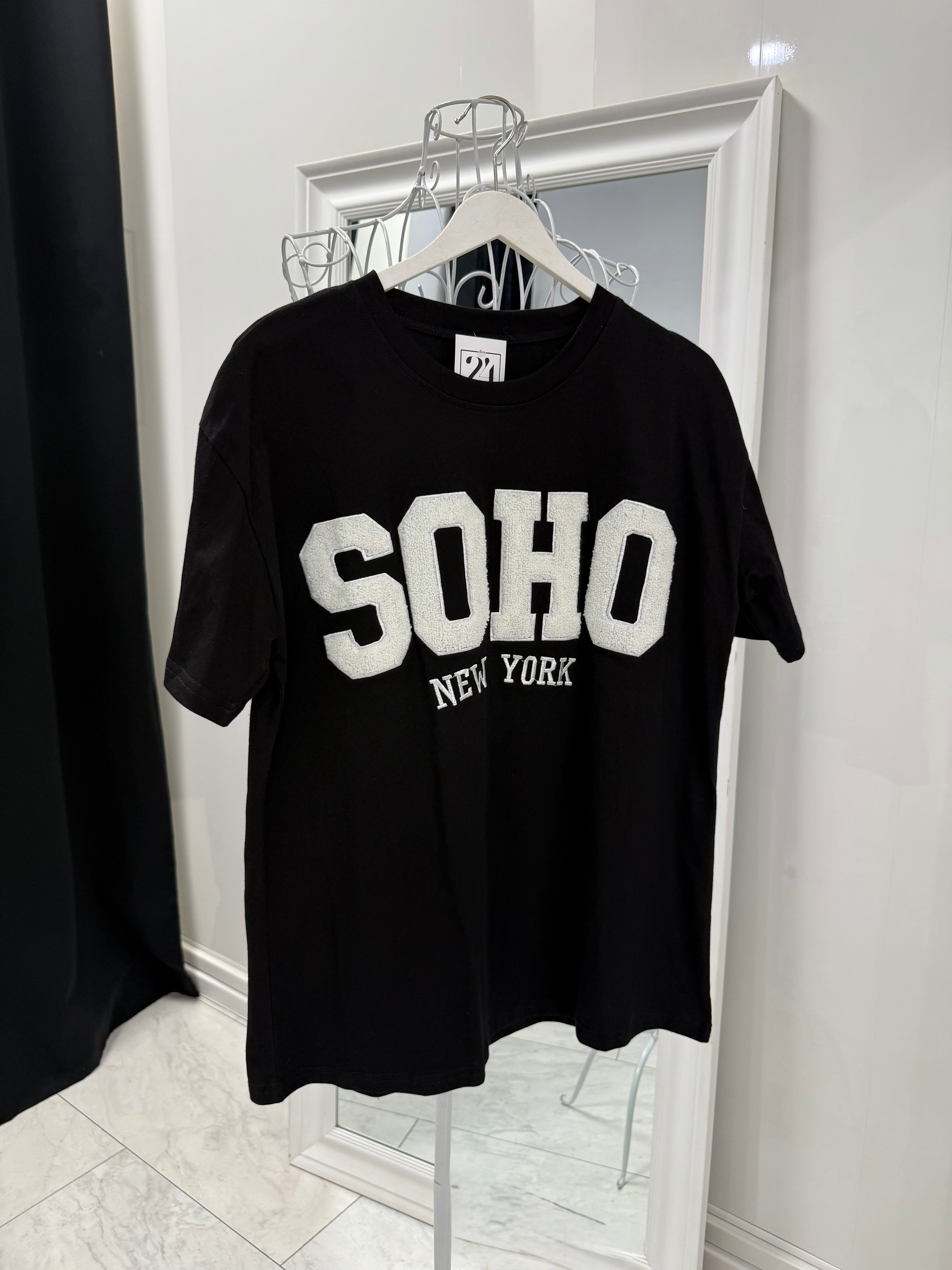 Oversized 100% cotton T-shirt featuring textured SOHO New York lettering on the front. The relaxed fit creates an effortless street-style look, while the soft cotton fabric ensures all-day comfort.
