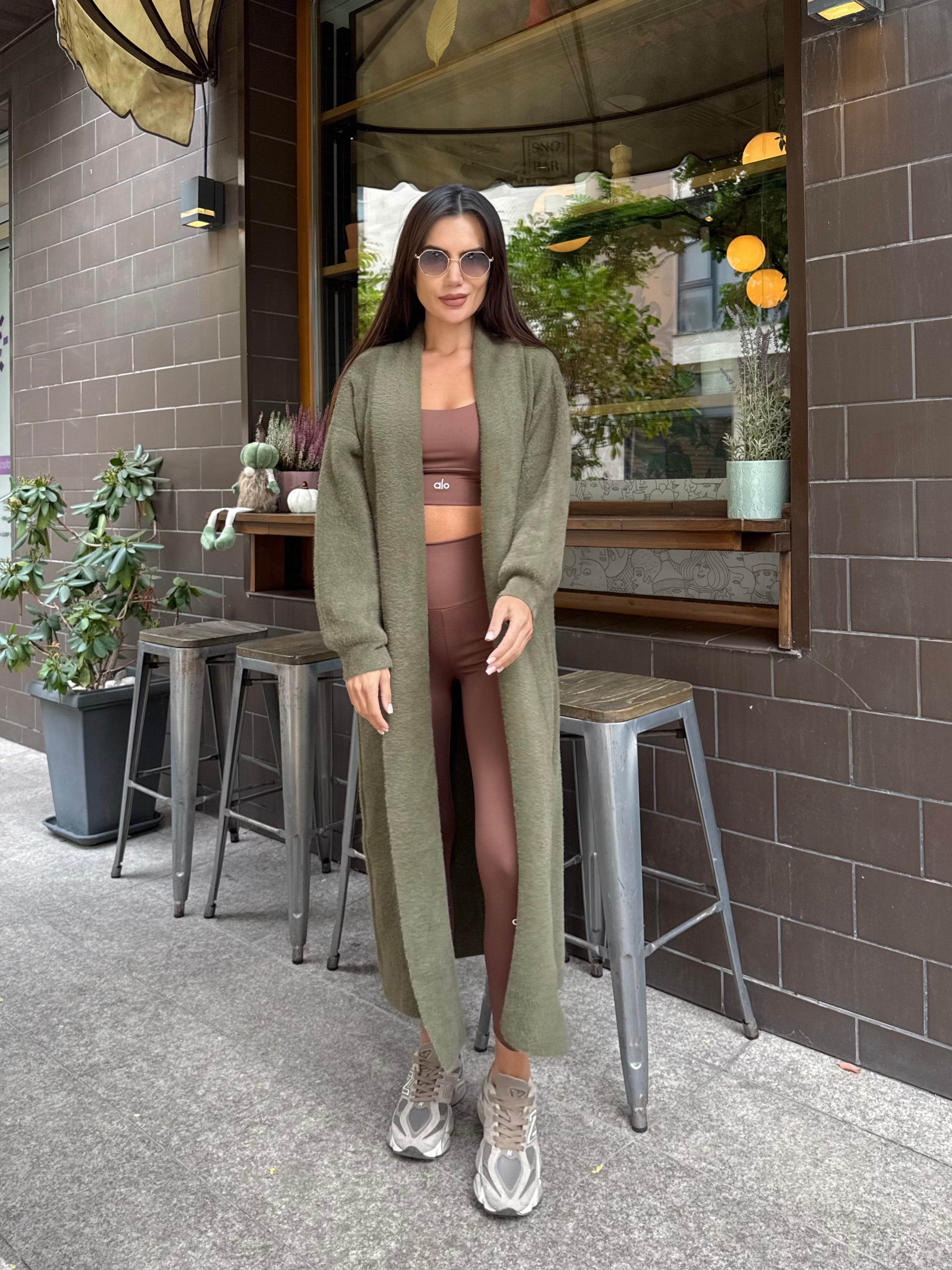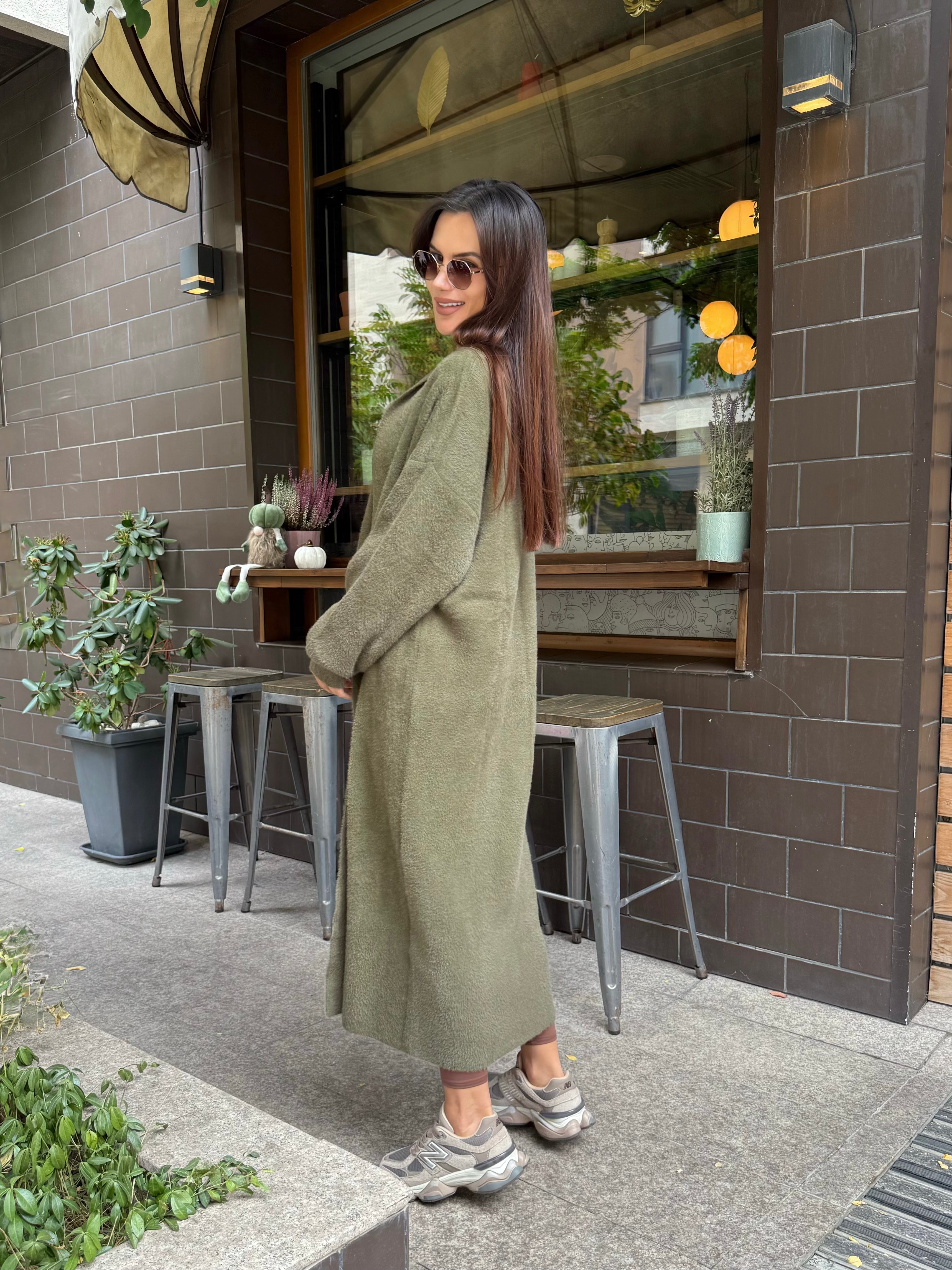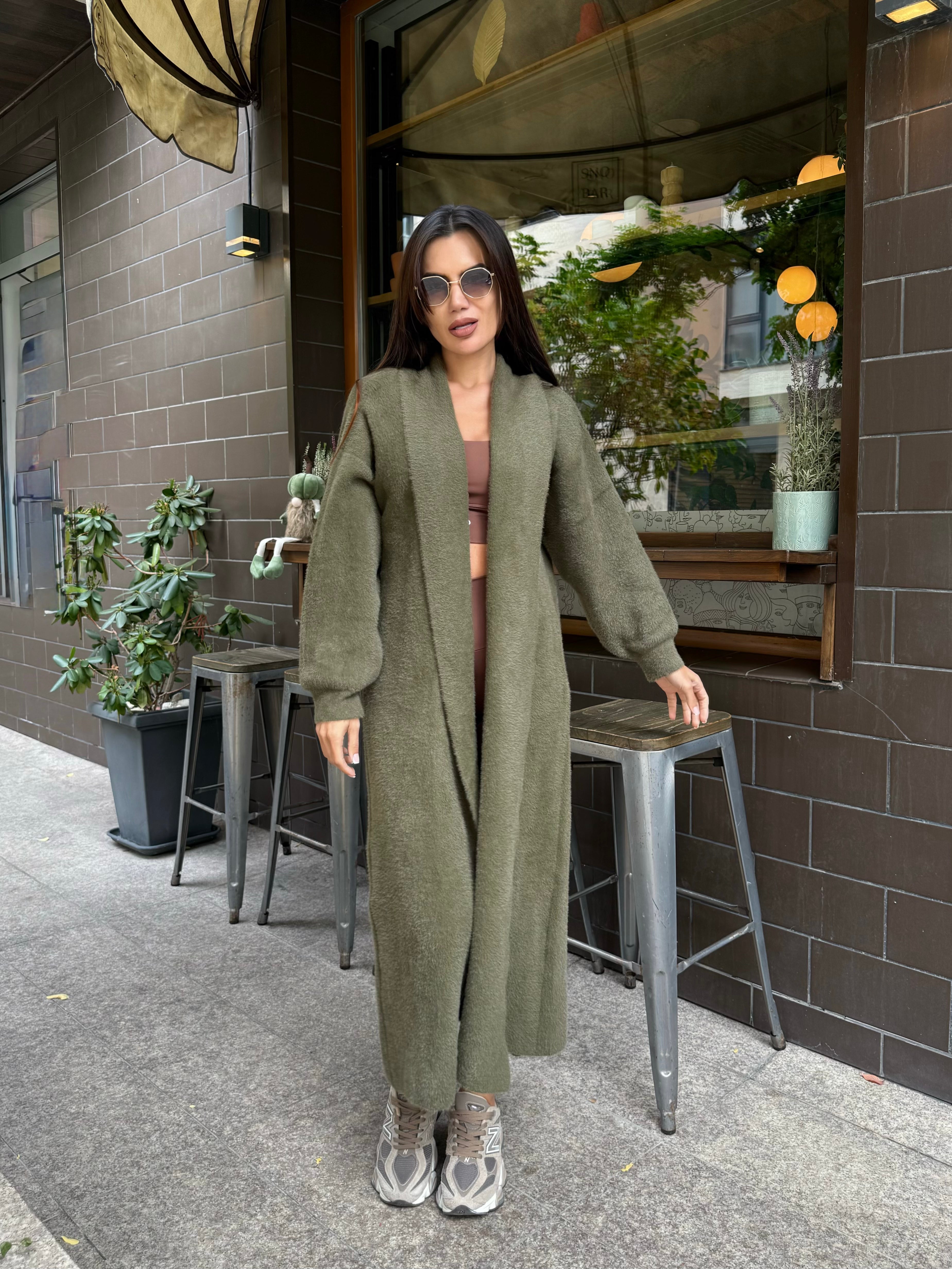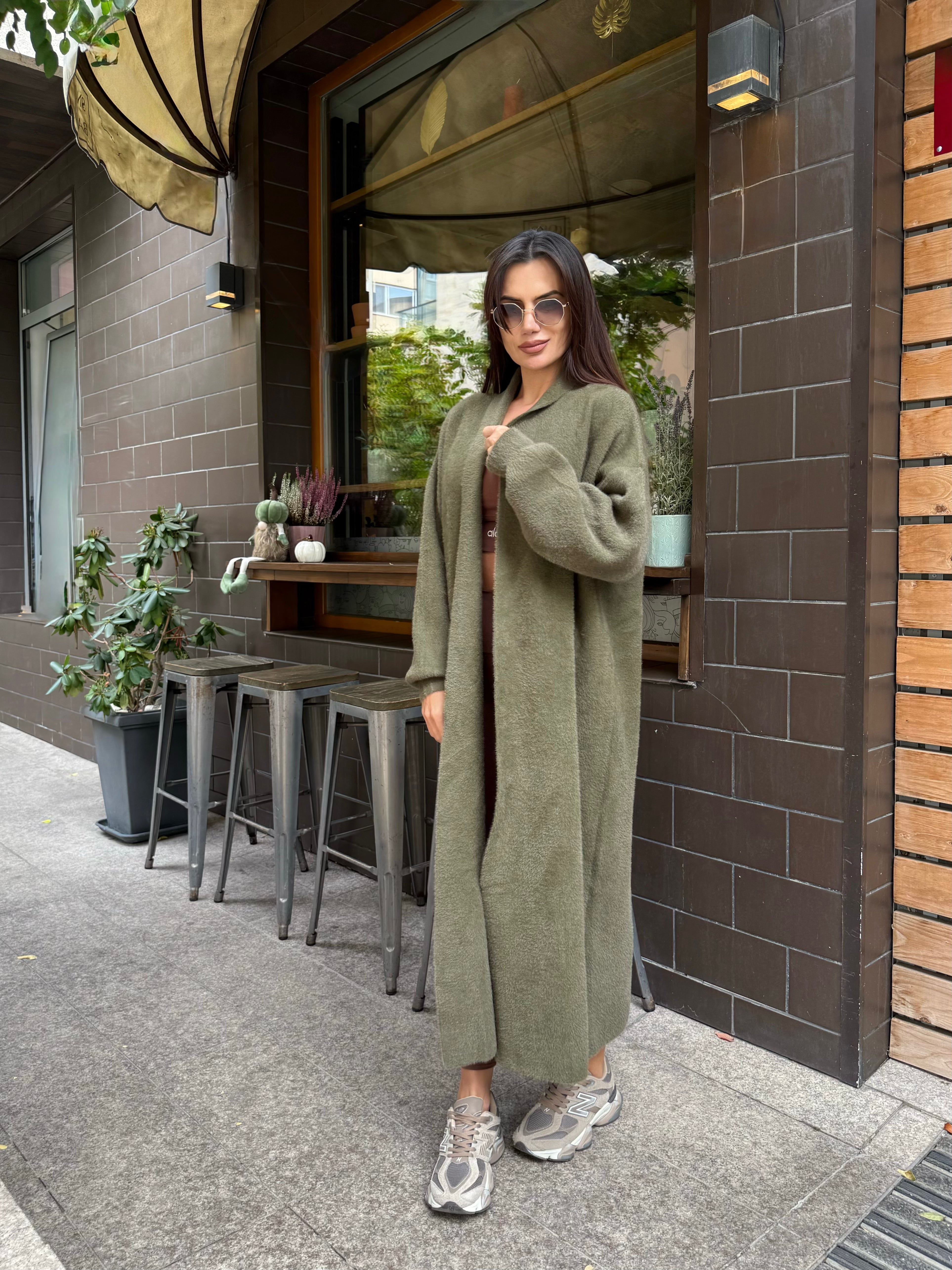 VEST made of fine elastic dense knit with a loose cut. The model can be worn as a jacket or coat.