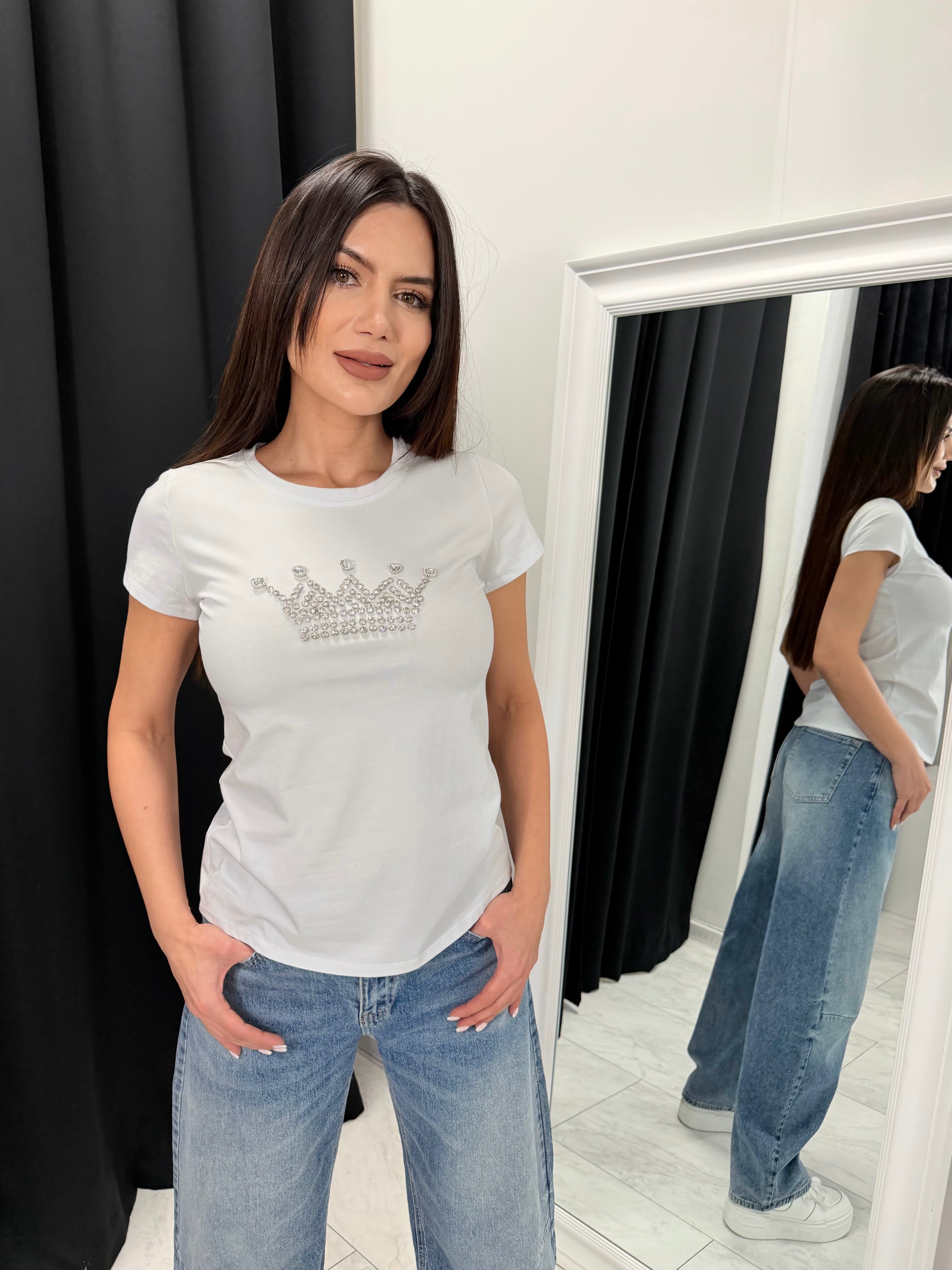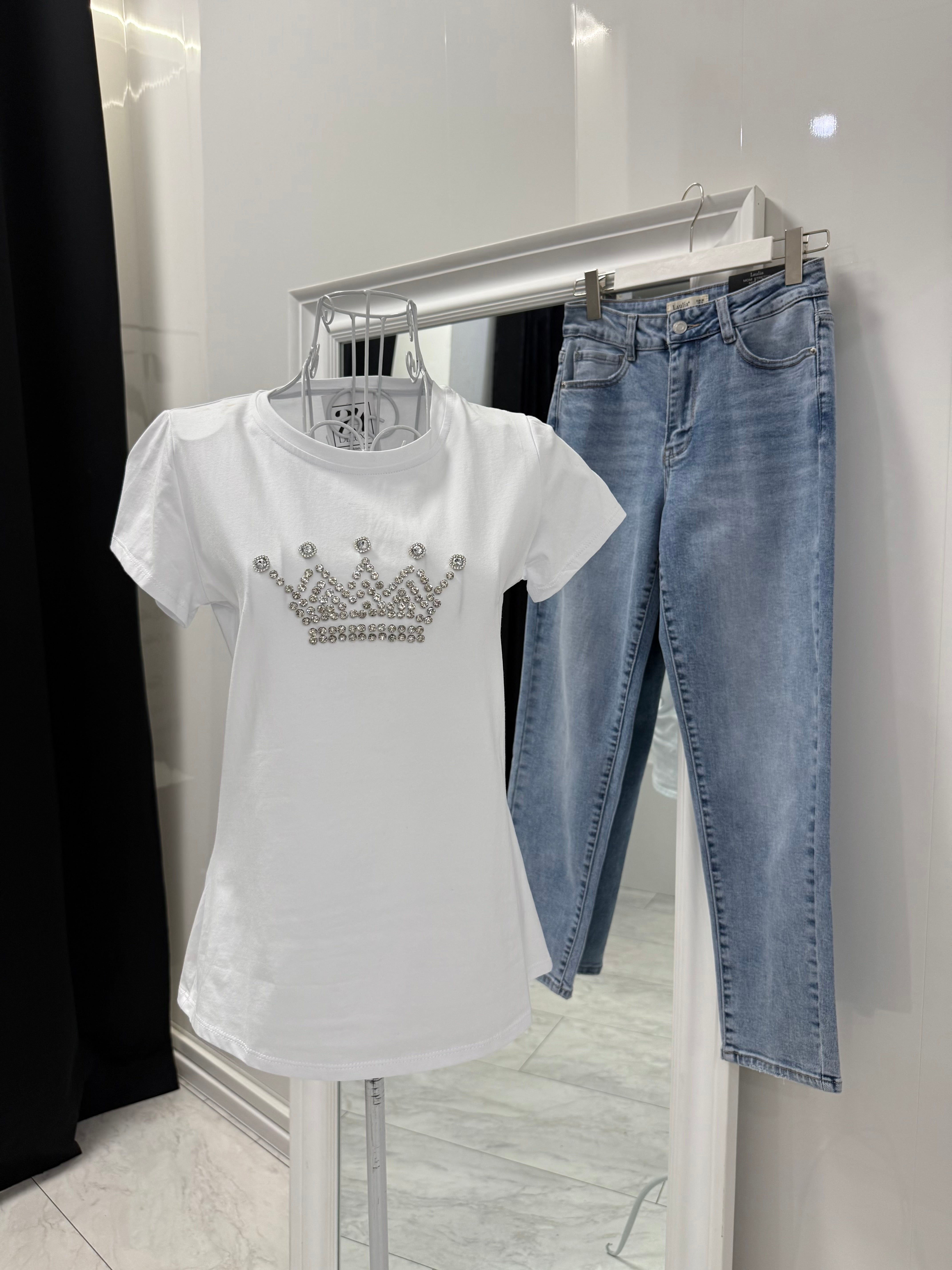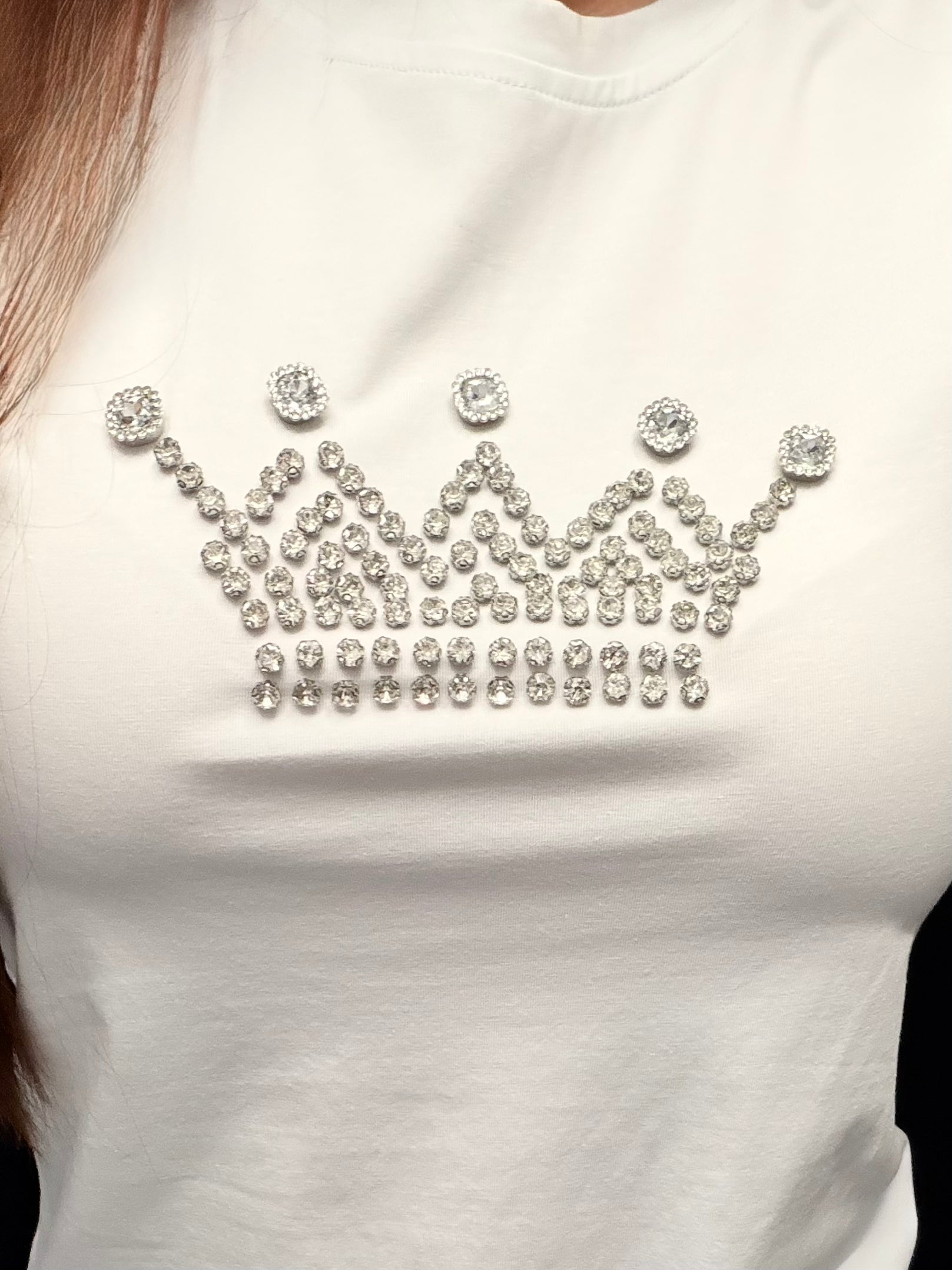 The CROWN Crystal Tee is crafted from soft stretch cotton that gently follows the body’s shape for all-day comfort. The delicate crystal crown detail adds subtle sparkle, elevating this essential piece into a refined statement.